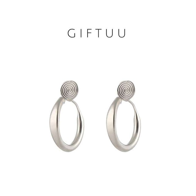 Y 166 . シルバー フープピアス 一体型イヤリング レディース ノンホール シンプル マット仕上げ 通勤アクセサリー ギフトにも最適