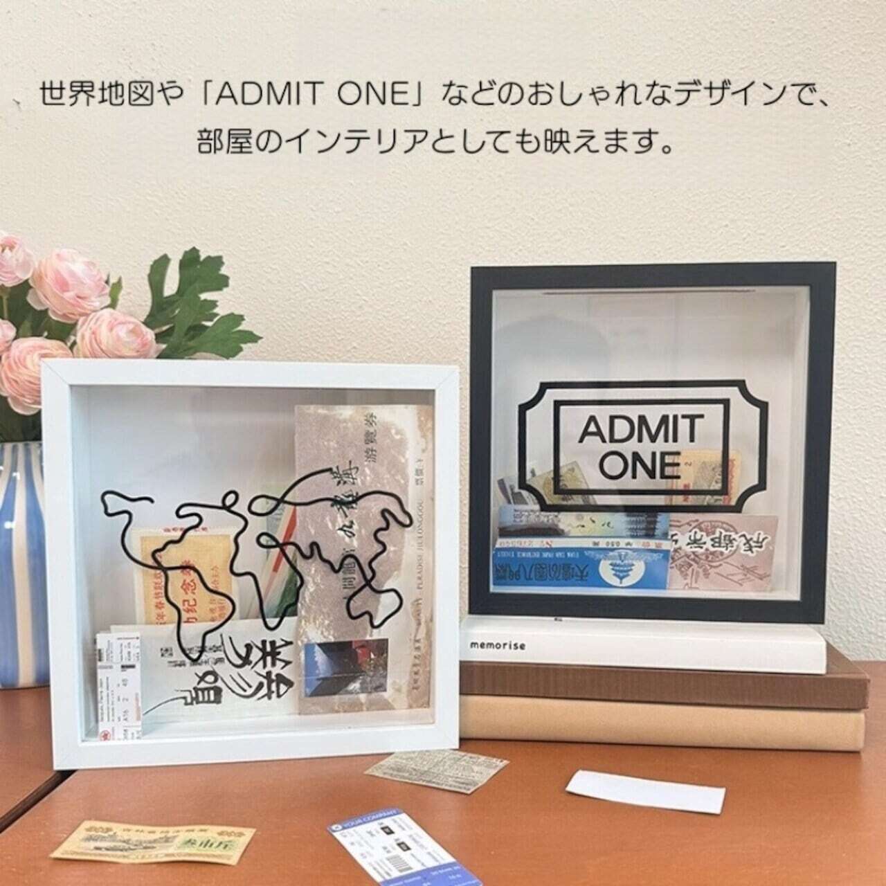旅行チケットや映画の半券、ライブ入場券、思い出の写真、紙幣やコインまで、大切な「人生の瞬間」をスタイリッシュに残せる透明フレーム型収納ボックス。