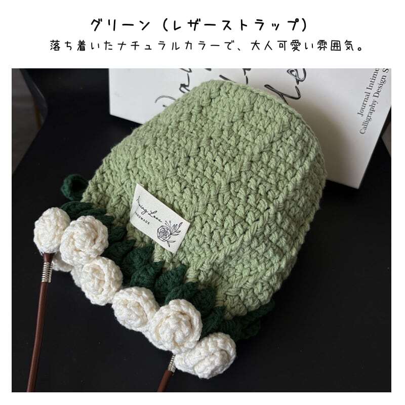 ■ 素材:高品質毛糸(アクリルブレンド)+合皮またはパールショルダーストラップ