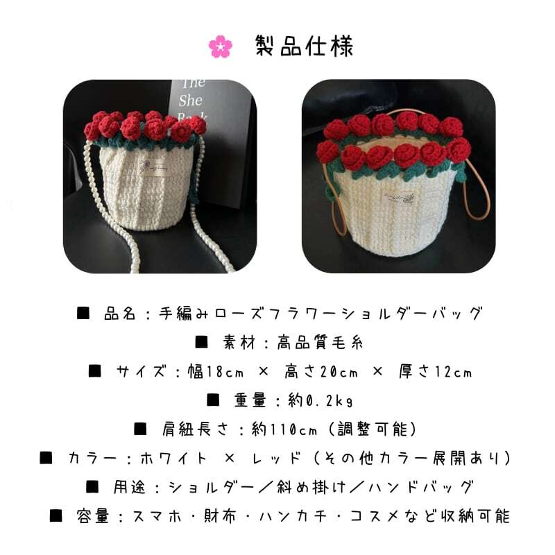 ■ 品名:手編みローズフラワーショルダーバッグ