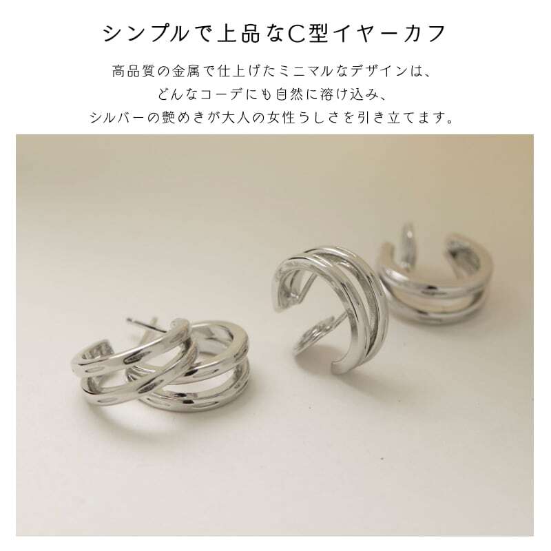 シンプルで洗練されたC型デザインのイヤーアクセサリー。