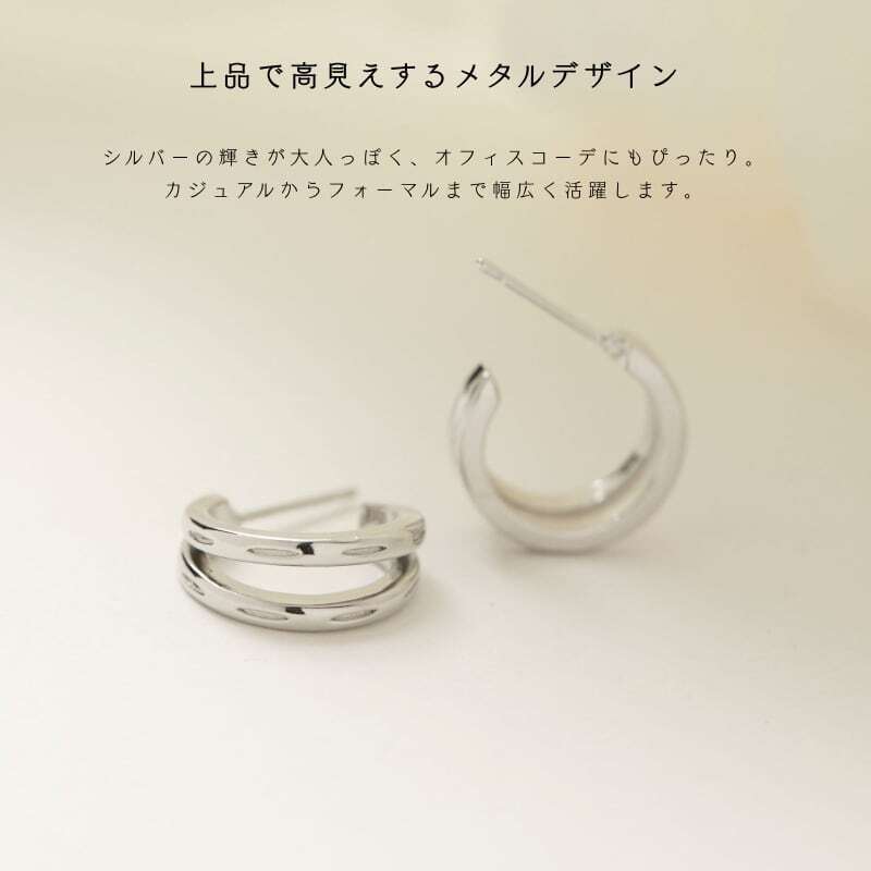 滑らかなメタルの艶と立体感のあるフォルムが、大人の女性らしさを引き立てます。