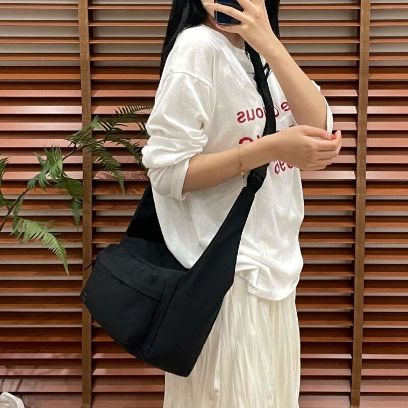 付属のストラップを切り替えるだけで、ショルダー(单肩)/斜め掛け(斜挎)/手提げの3通りの使い方が可能。その日の荷物や服装、気分に合わせて自由にスタイルを変えられます。
