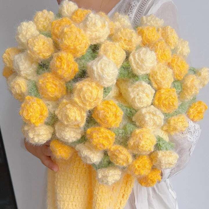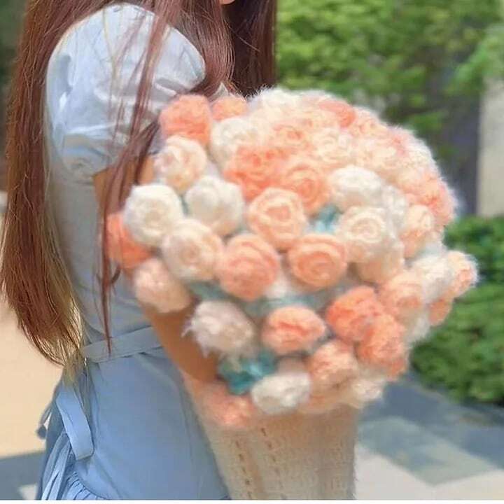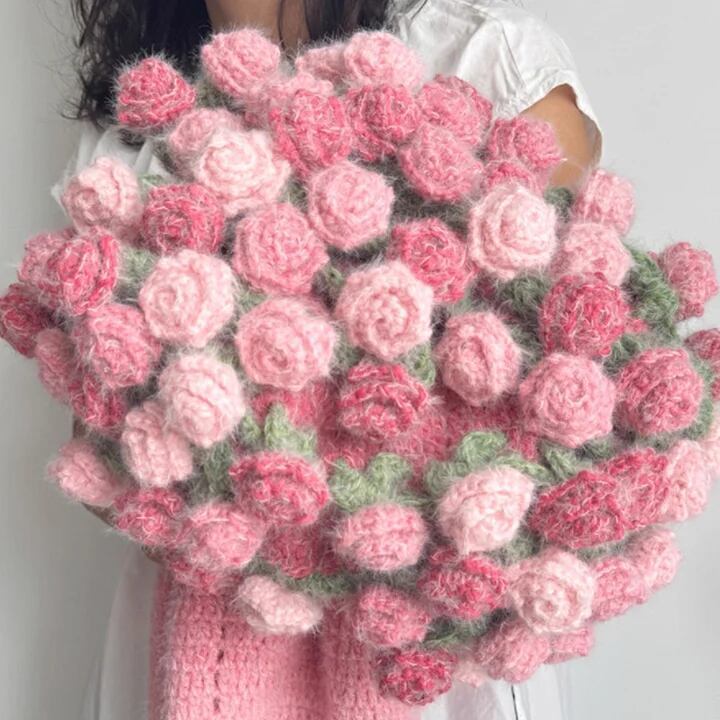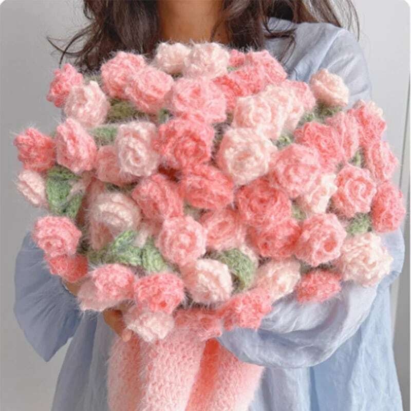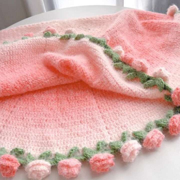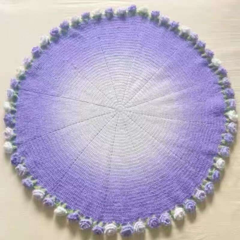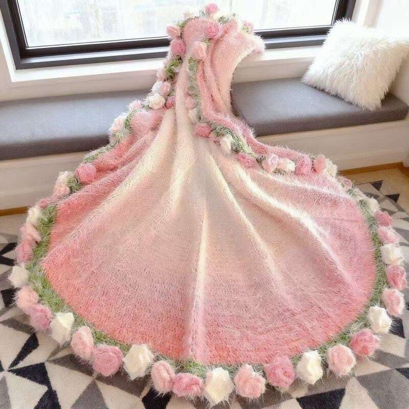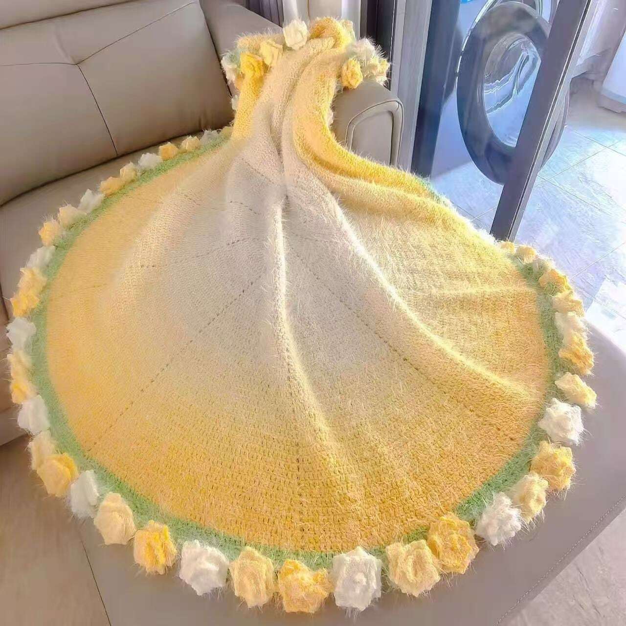 Y 156 . 【職人手作り/完成品】 ニューモデル ドリーミーグラデーションバラ模様ブランケット 手作り DIY 編み毛糸フラワーブーケ風敷物 彼女へのプレゼント クリスマス / 記念日ギフト | GIFTUU
