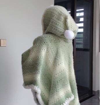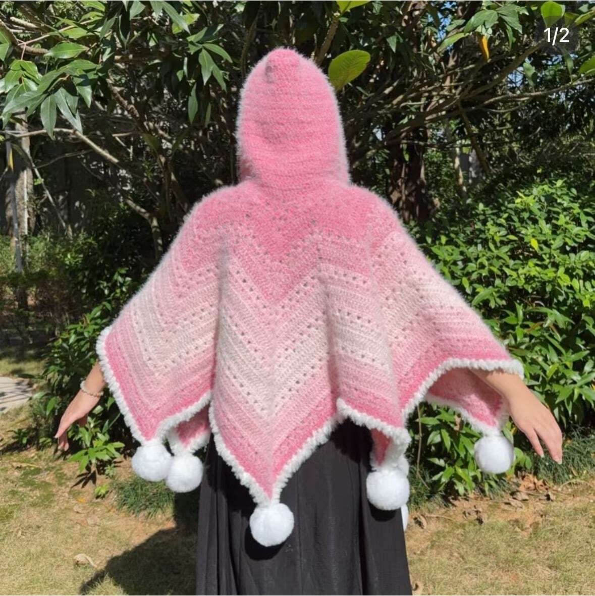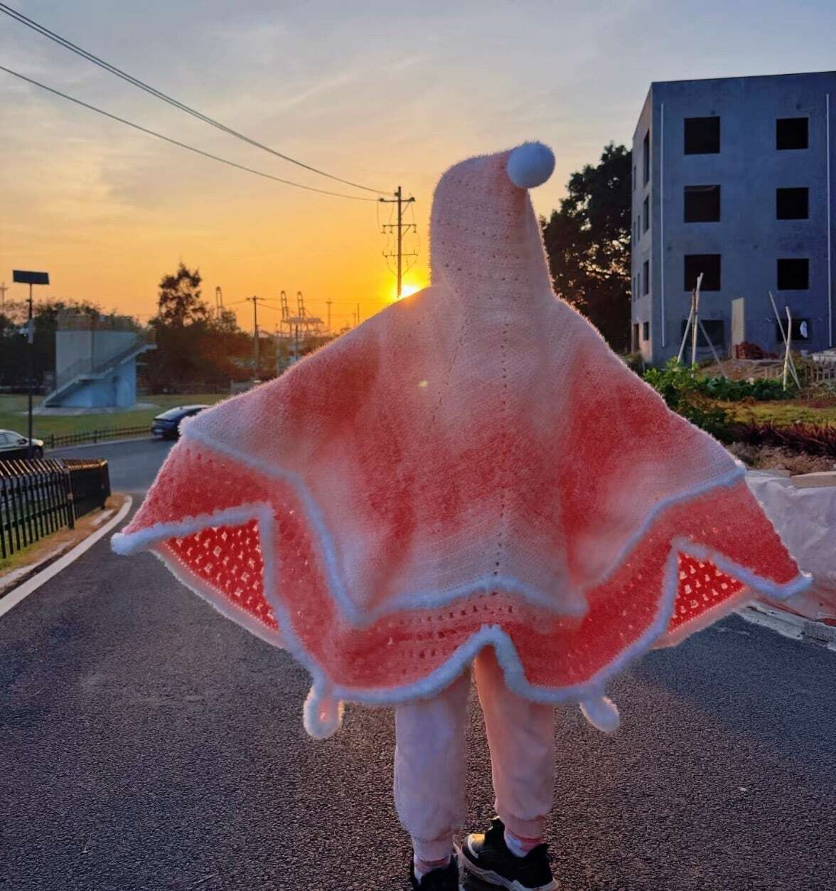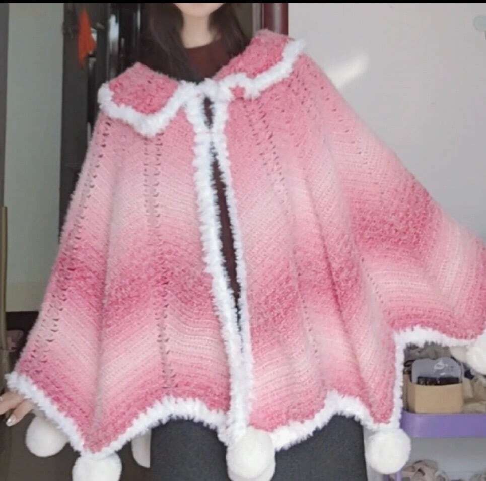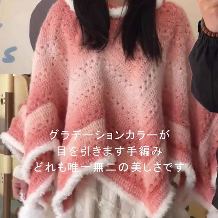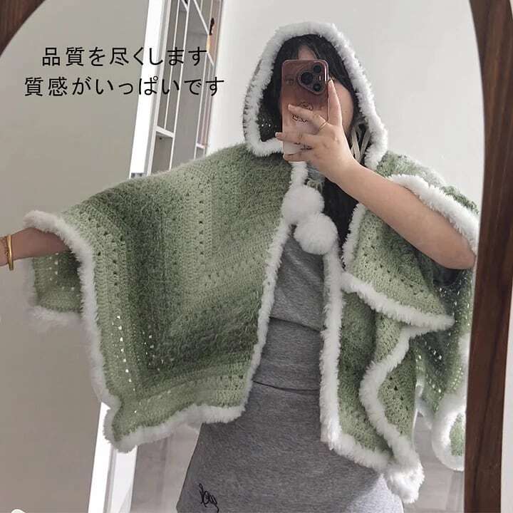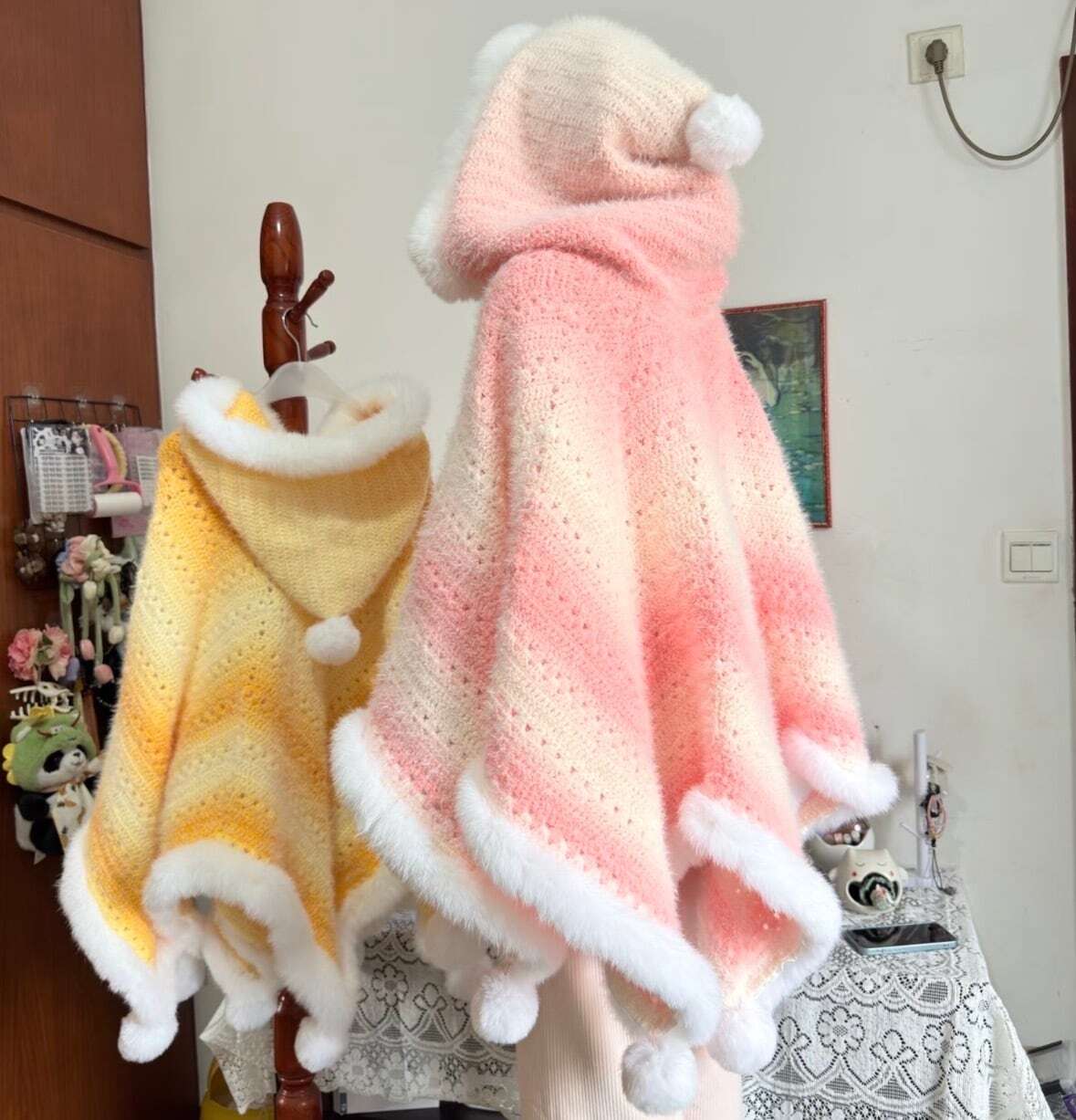 Y 155 . 【ご購入特典】編み方動画レッスンプレゼント 手編み ケープ ポンチョ 毛糸 材料キット フード付き 七色 グラデーション 毛布 ハンドメイド DIY 秋冬 防寒 プレゼント 手作り | GIFTUU