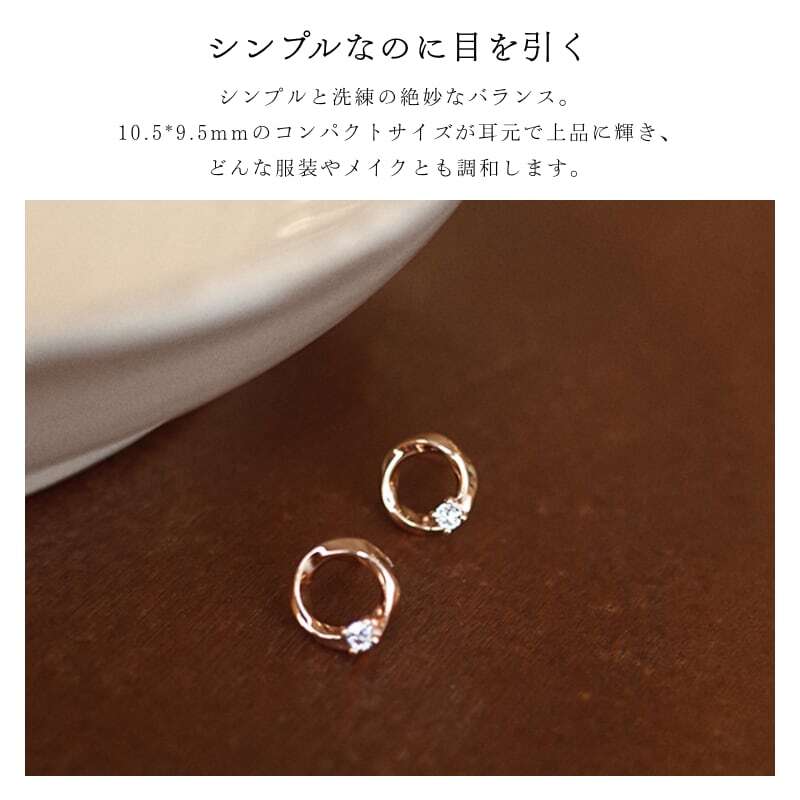 たった1.1gの軽量設計。小さな耳元で上品にきらめくキュービックジルコニアが、日常にさりげない高級感と華やぎをプラスします。