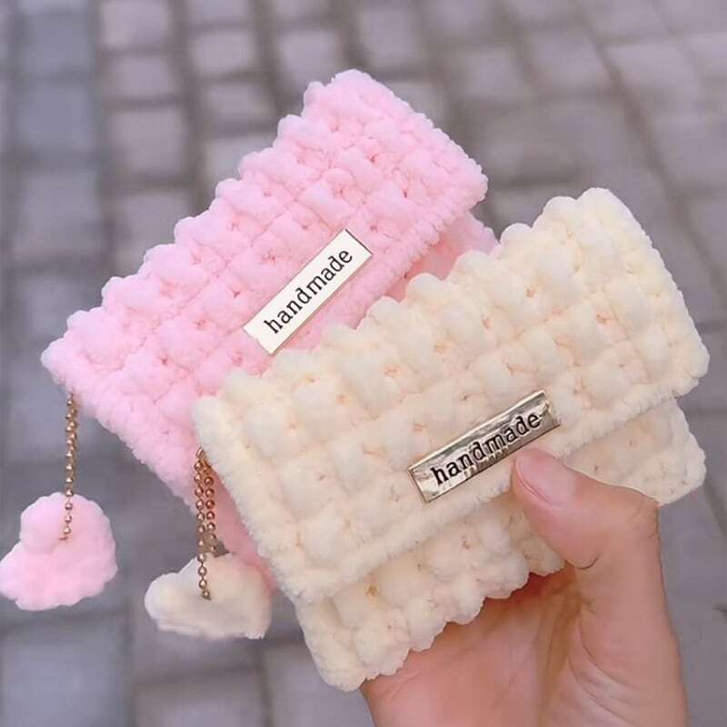 ◎ ふわふわの毛糸で作る、癒し系ハンドメイドポーチ。