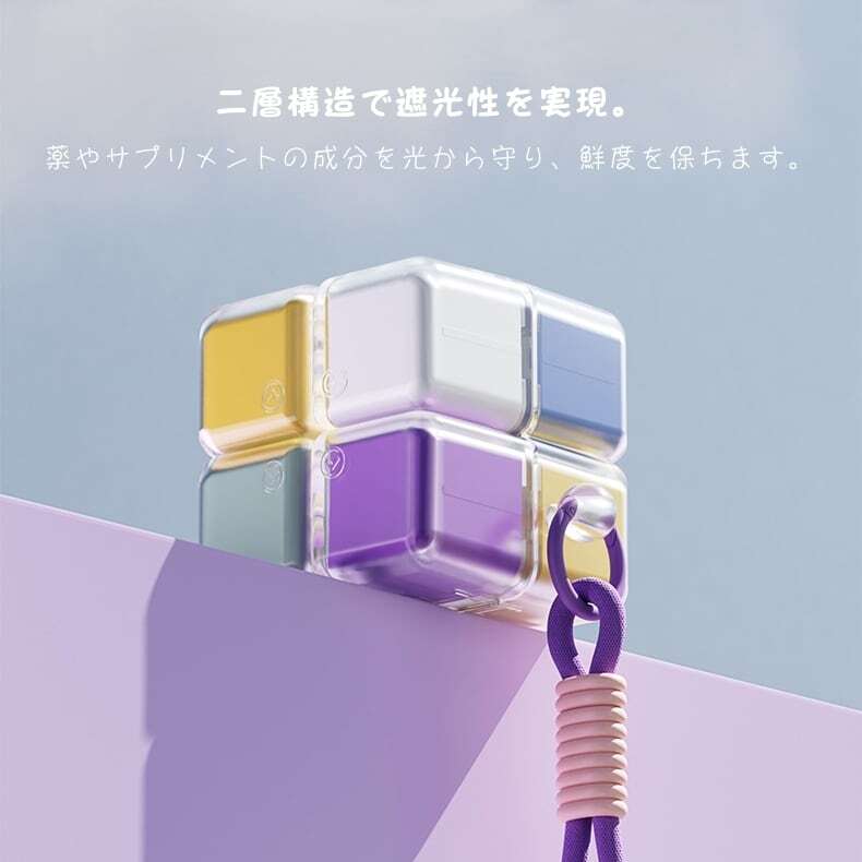 二層構造と強化ロックで湿気や光を遮断。薬やサプリメントの成分を守り、効果を持続させます。