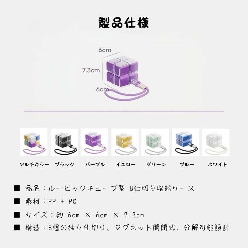 ■ 品名:ルービックキューブ型 8仕切り携帯薬ケース