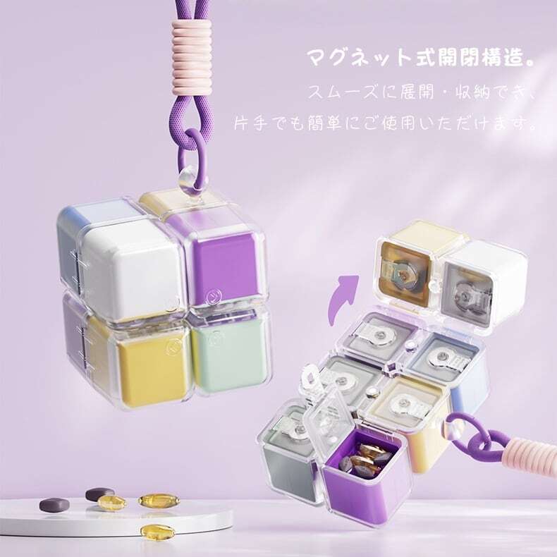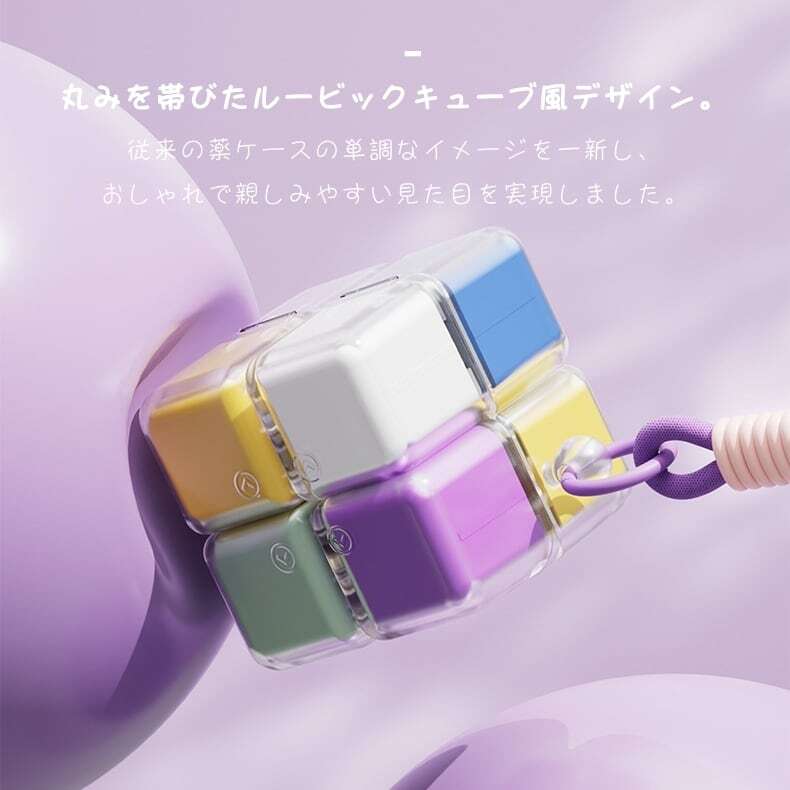 🌈 遊び心のあるルービックキューブデザインが、毎日の薬の管理を楽しくする。