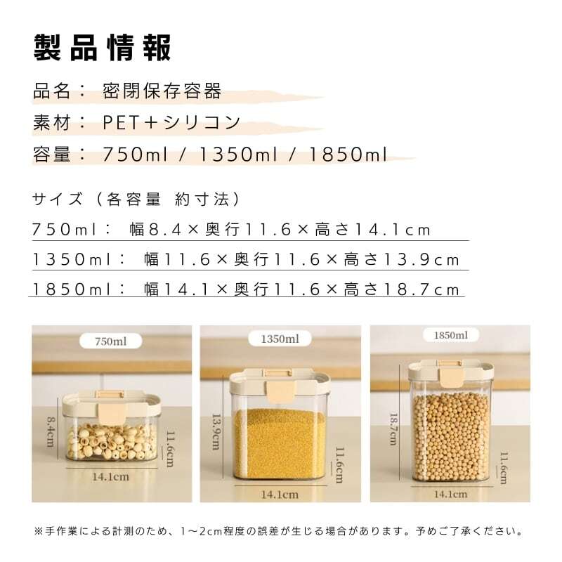 ・1850ml:幅14.1cm × 奥行11.6cm × 高さ18.7cm