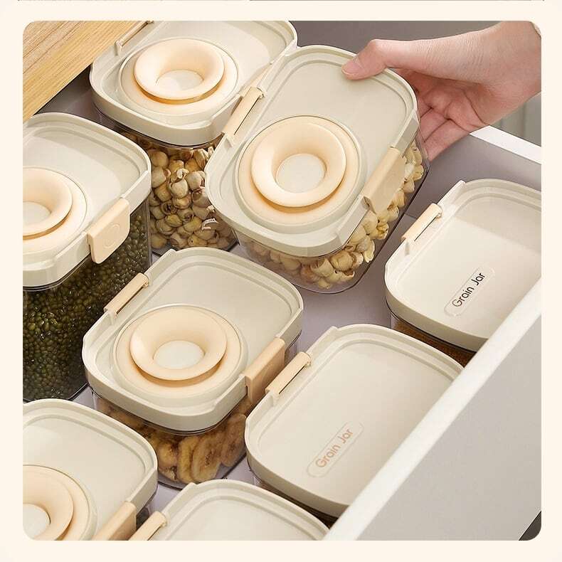 🗃️ ワンタッチで完全密封。キッチン・パントリーの悩みを解決する、透明な収納システム