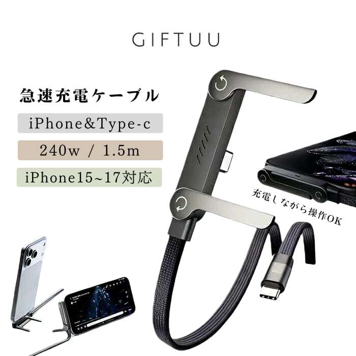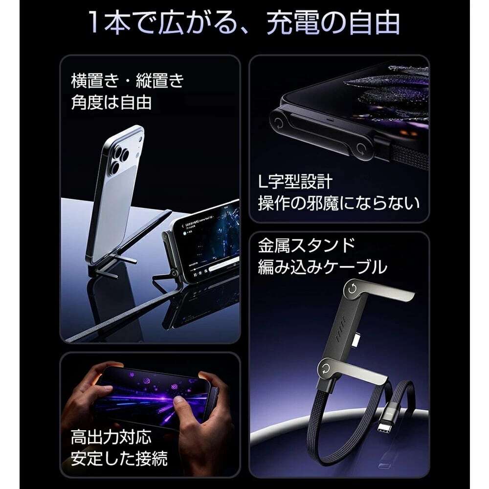 この「折りたたみスタンド付き 急速充電ケーブル」は、充電機能とスマホスタンド機能を一体化した新しいタイプのケーブルです。