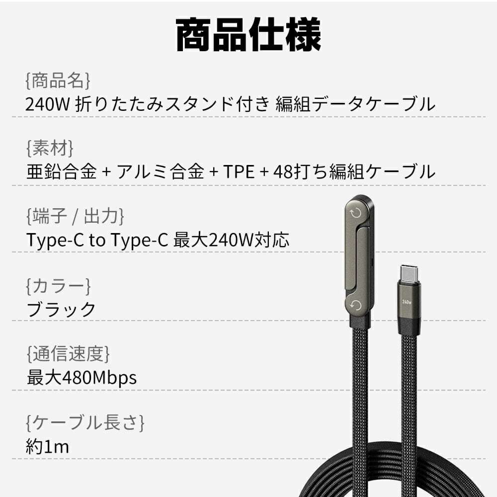 品名:折りたたみスタンド付き 急速充電ケーブル