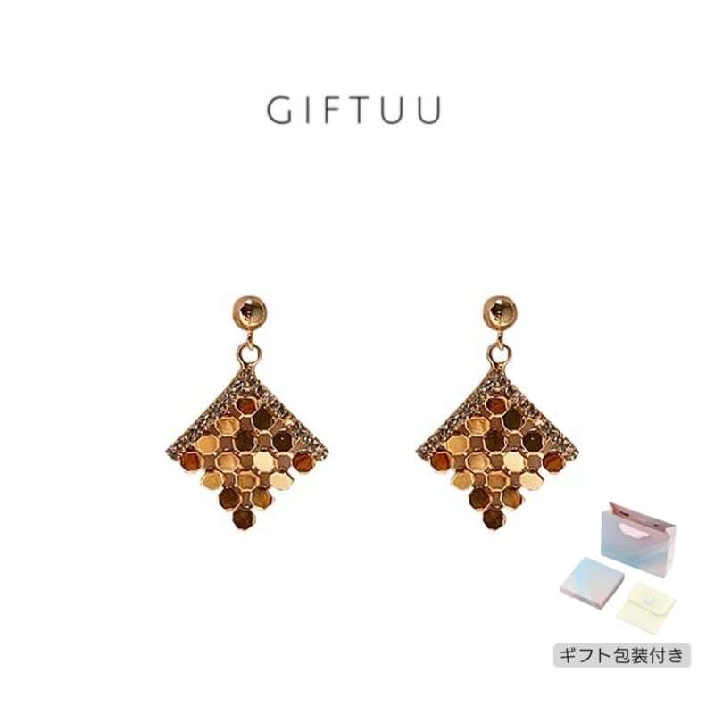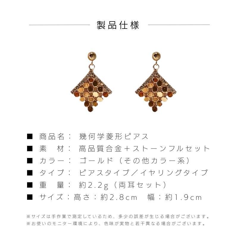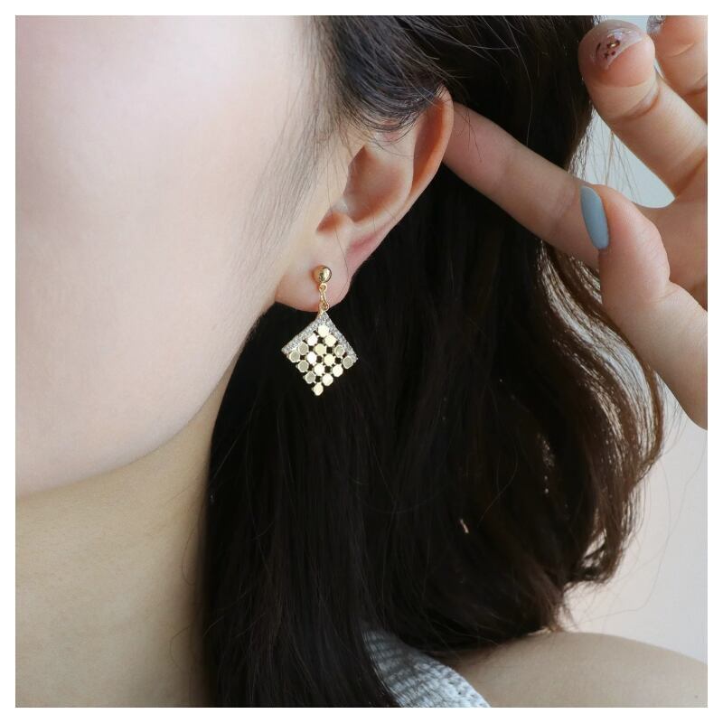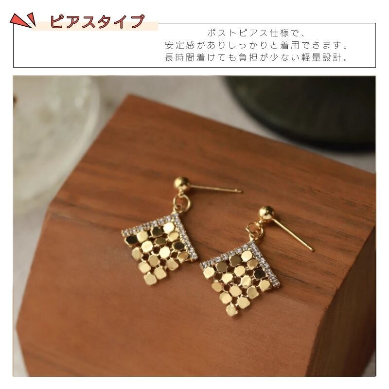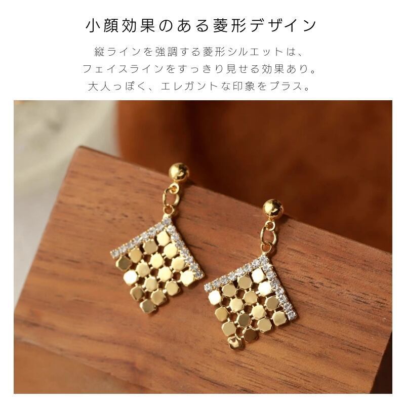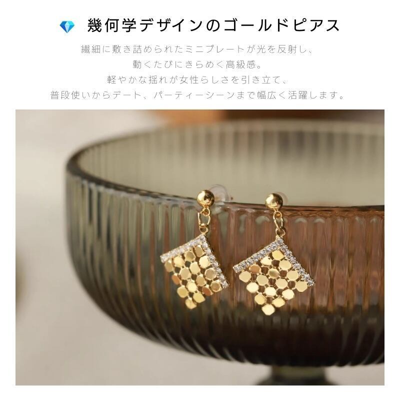 上品な輝きと小顔効果を叶える、幾何学デザインのゴールドピアス。