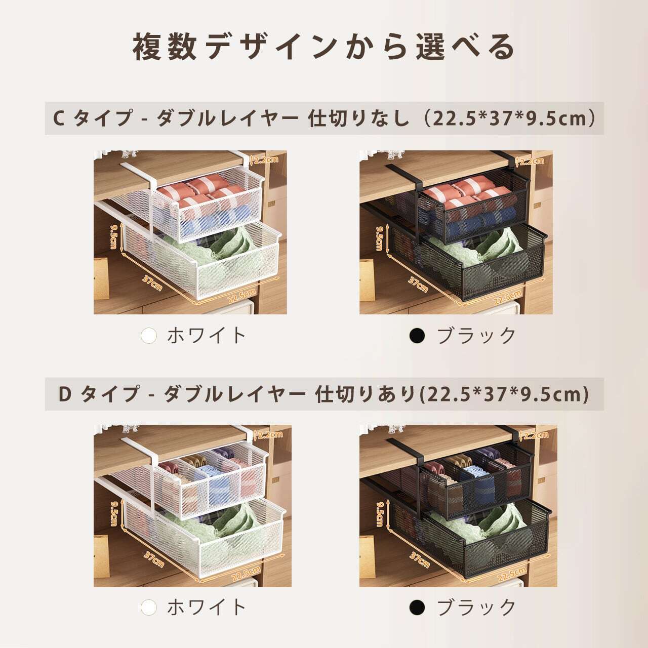 Y 318 . 吊り下げ式引き出し収納ラック クローゼット収納 引き出し式ラック 吊り下げ収納 下着 靴下 収納ボックス 衣類整理 省スペース 分類収納 厚手素材 4タイプ展開 ホワイト ブラック シングルレイヤー ダブルレイヤー | GIFTUU