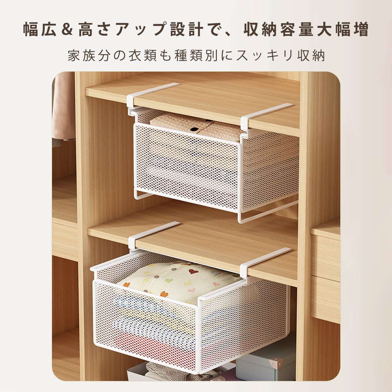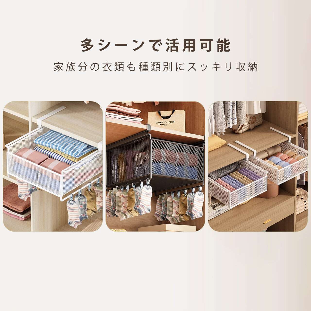 クローゼットのパイプや棚板に引っ掛けるだけで、使っていなかった空間が見違えるような便利な収納スペースに早変わり。下着、靴下、小物類をすっきり整理して、毎日のコーディネートをもっとスムーズにします。