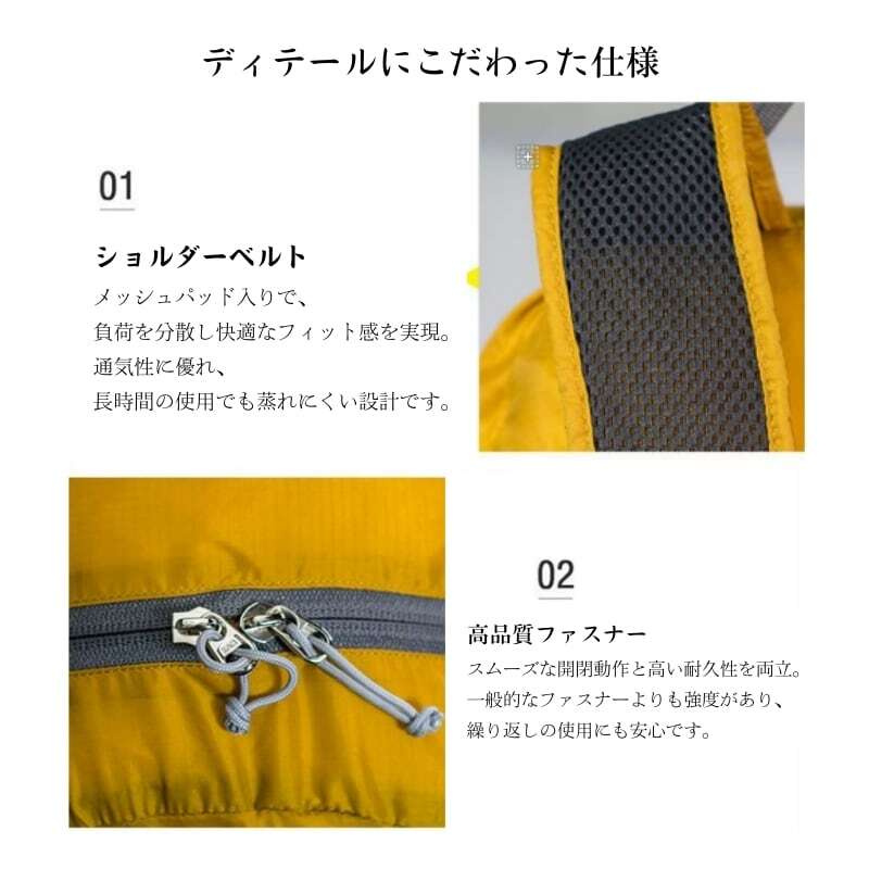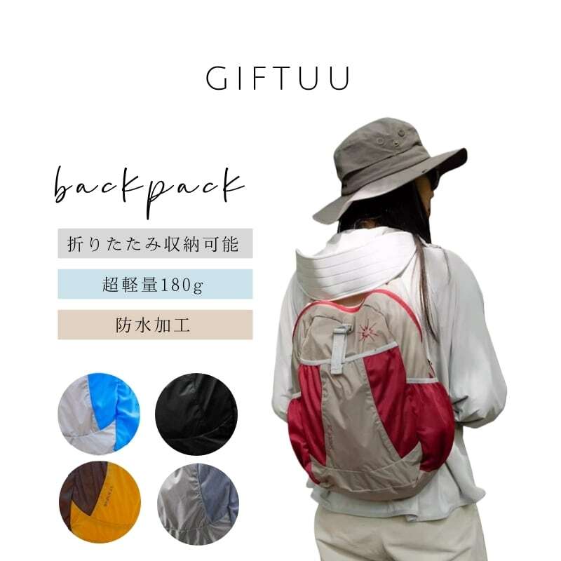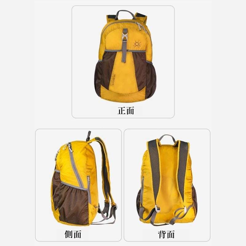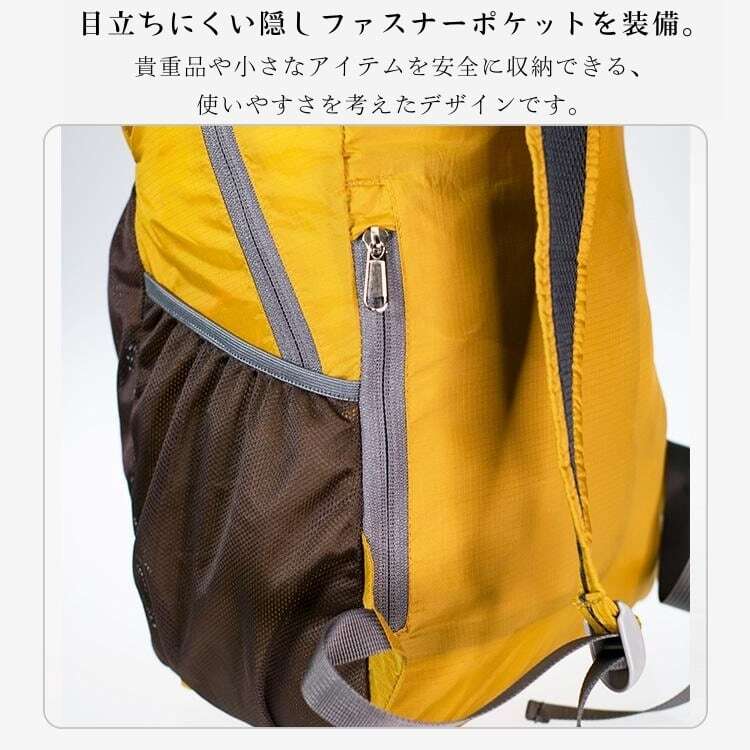 高品質防水ナイロン生地を使用した、超軽量でどこへでも持ち歩ける折りたたみリュック。
