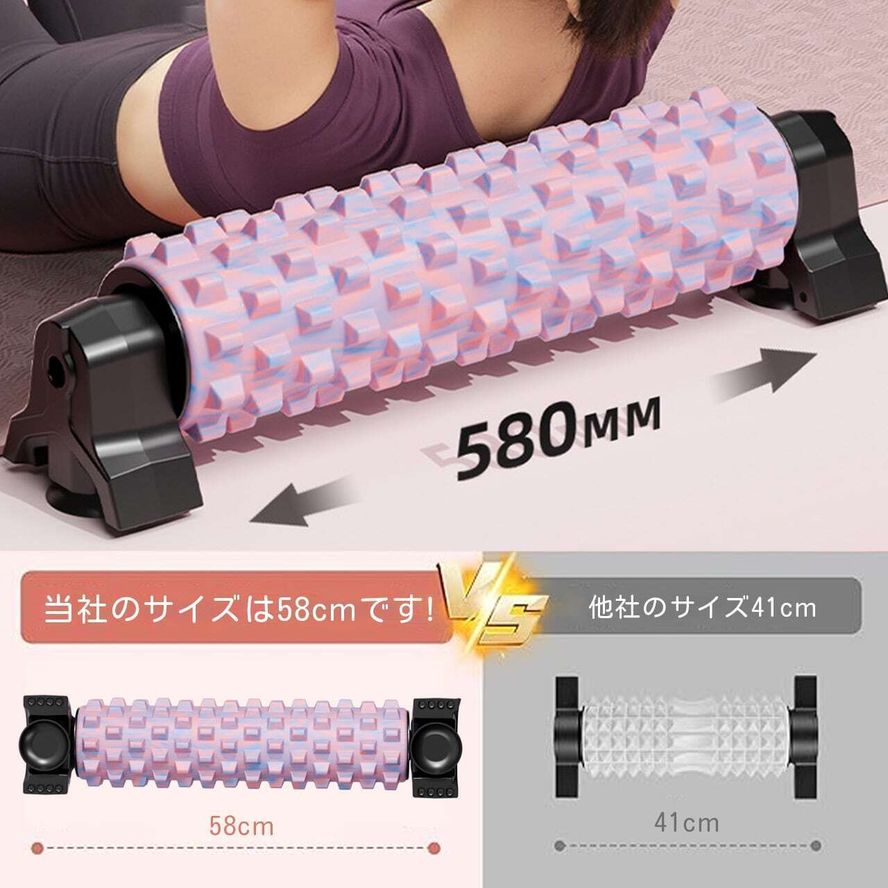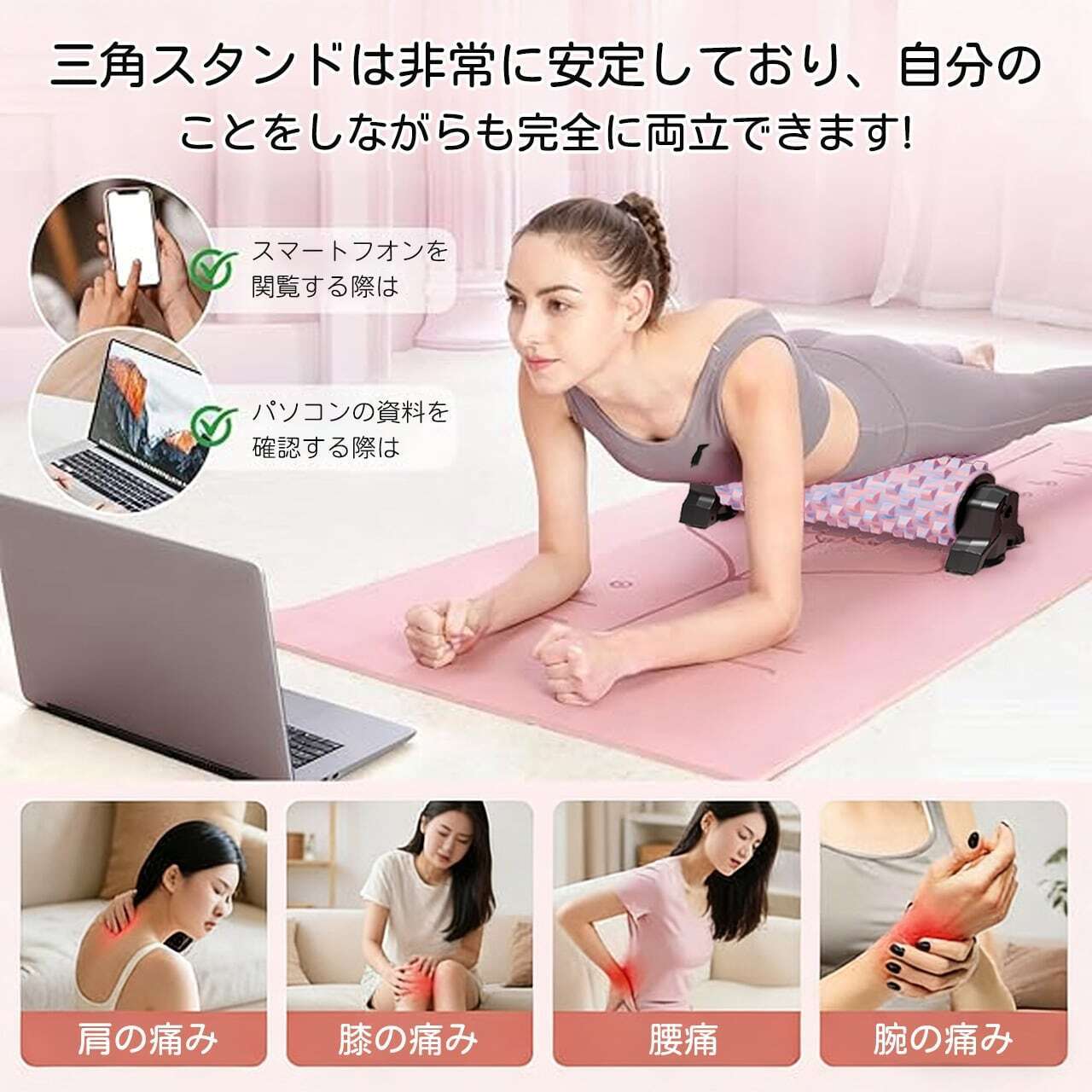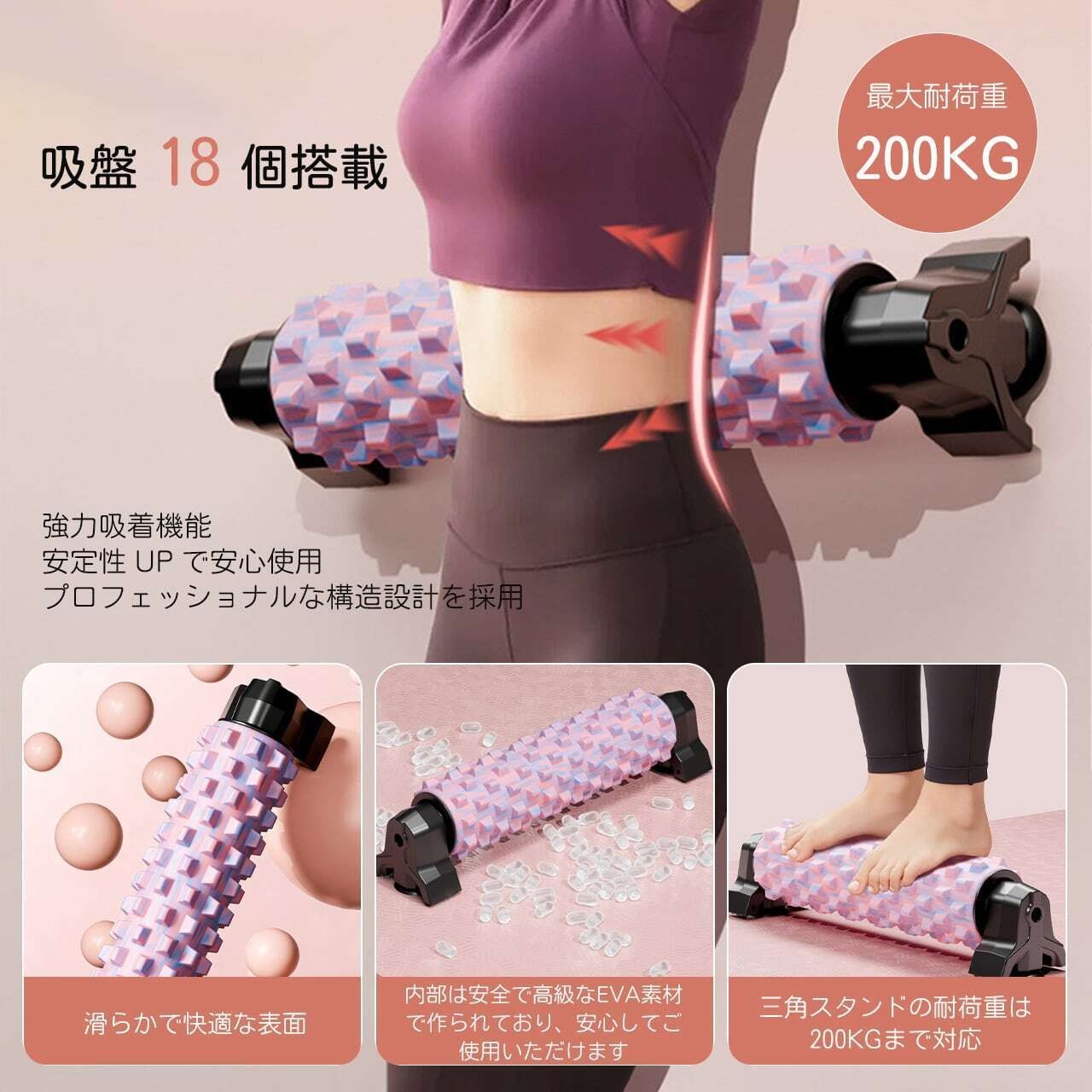 Y 316 . スタンド付きフォームローラー 三角スタンド 強力吸盤 18個搭載 耐荷重200kg 筋膜リリース マッサージ 筋肉ケア 多部位対応 背中 腰 脚 お尻 リラックス フィットネス器具 58cm ブルー ピンク グリーン パープル