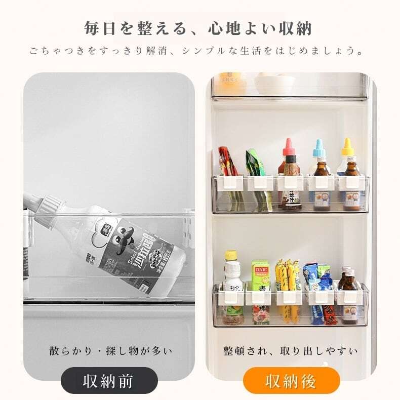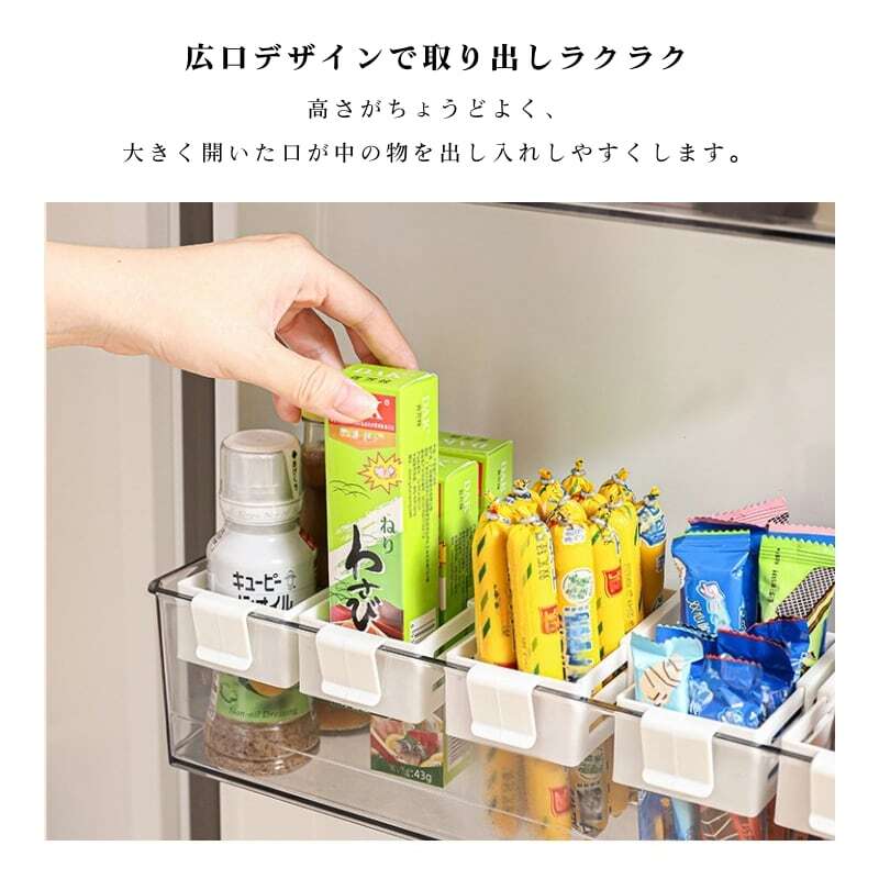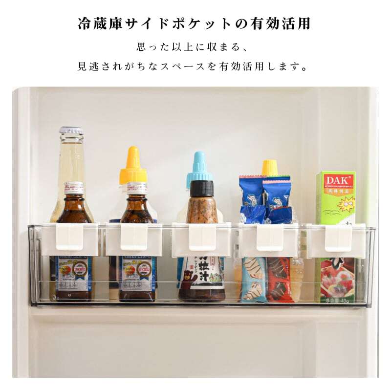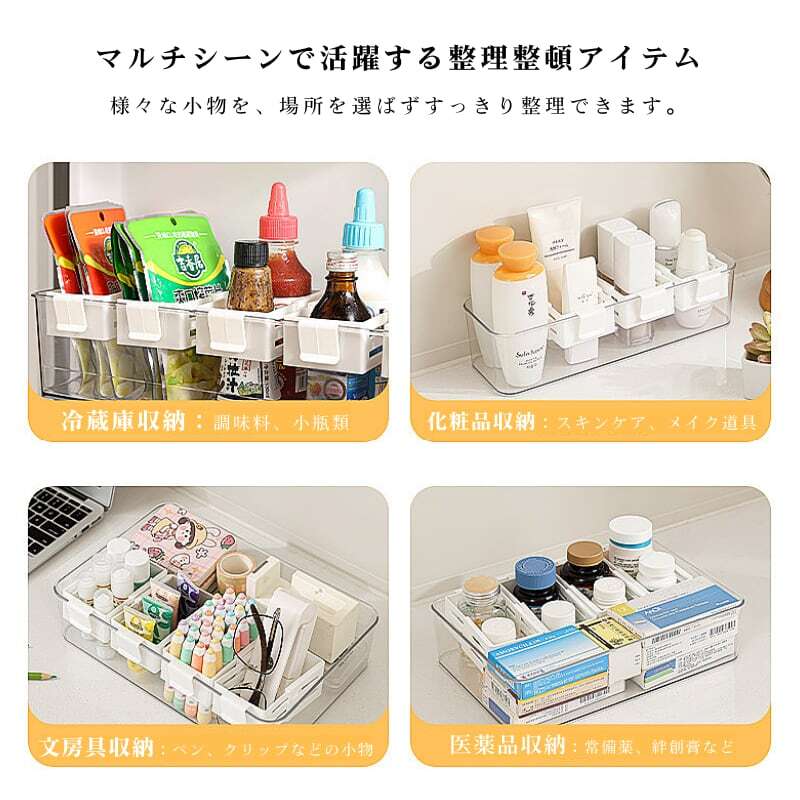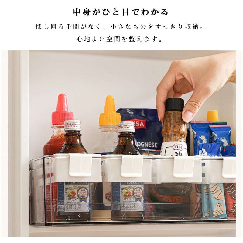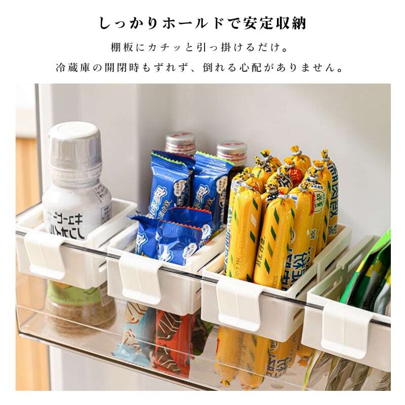 主な使用シーン:冷蔵庫内(棚下、ドアポケット)、キッチン収納、文具・化粧品・医薬品の整理など