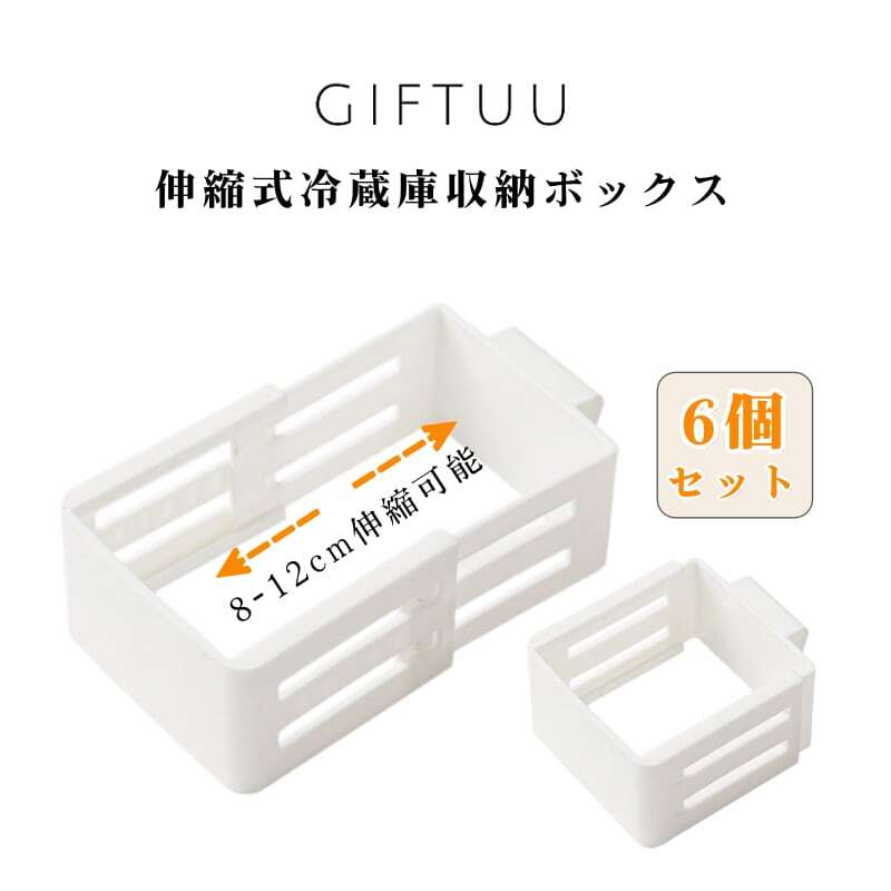 Y 295 . 冷蔵庫 伸縮収納ボックス 棚下 隙間 有効活用 調味料 小瓶 チューブ 立て収納 スライド 移動 ホワイト 6個セット 伸縮可能 8-12cm ドアポケット マルチ収納