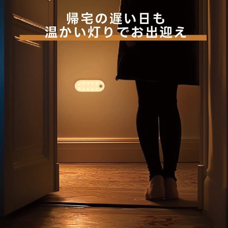 暗闇でスイッチを探さない。人感センサー搭載で自動点灯する、便利なセンサーライトです。