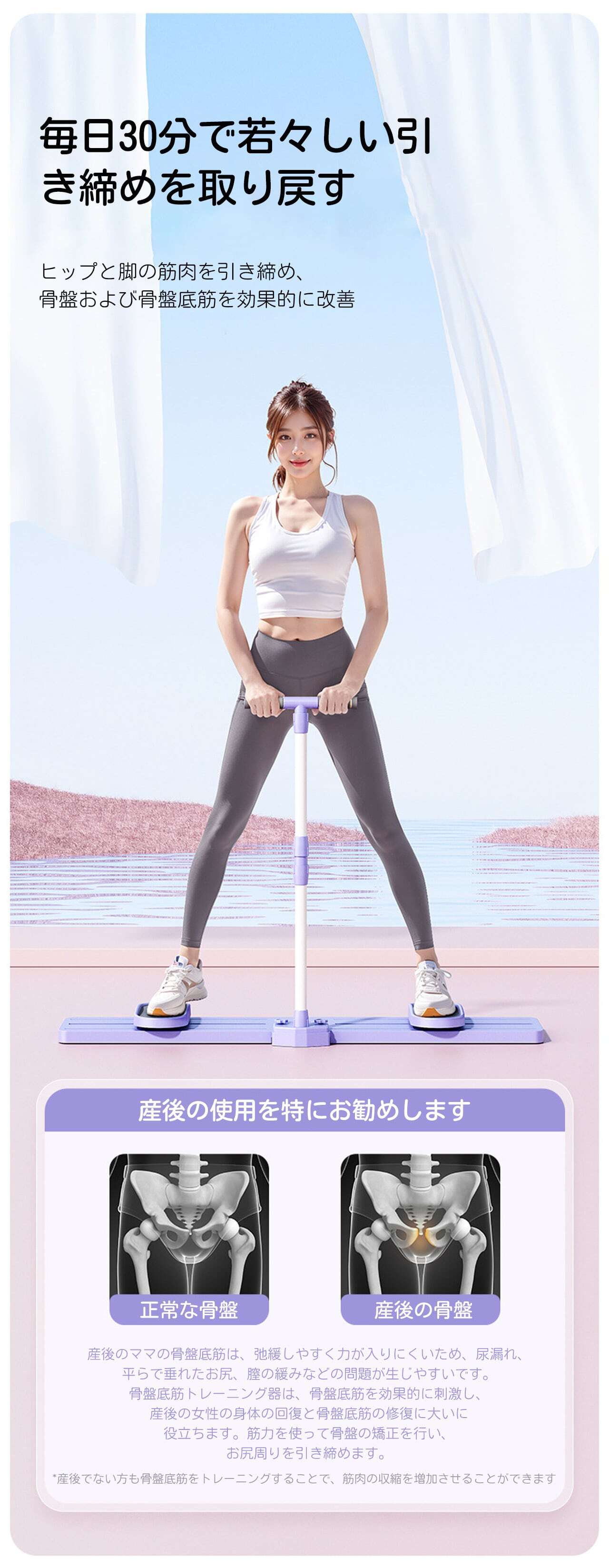 Y 305 . 骨盤底筋トレーナー 産後 引き締め ヒップアップ 脚やせ トレーニング器具 家庭用 折りたたみ 収納 コンパクト 静音 滑り止め T型ハンドル付き 2in1 レッグスキーマシン パープル