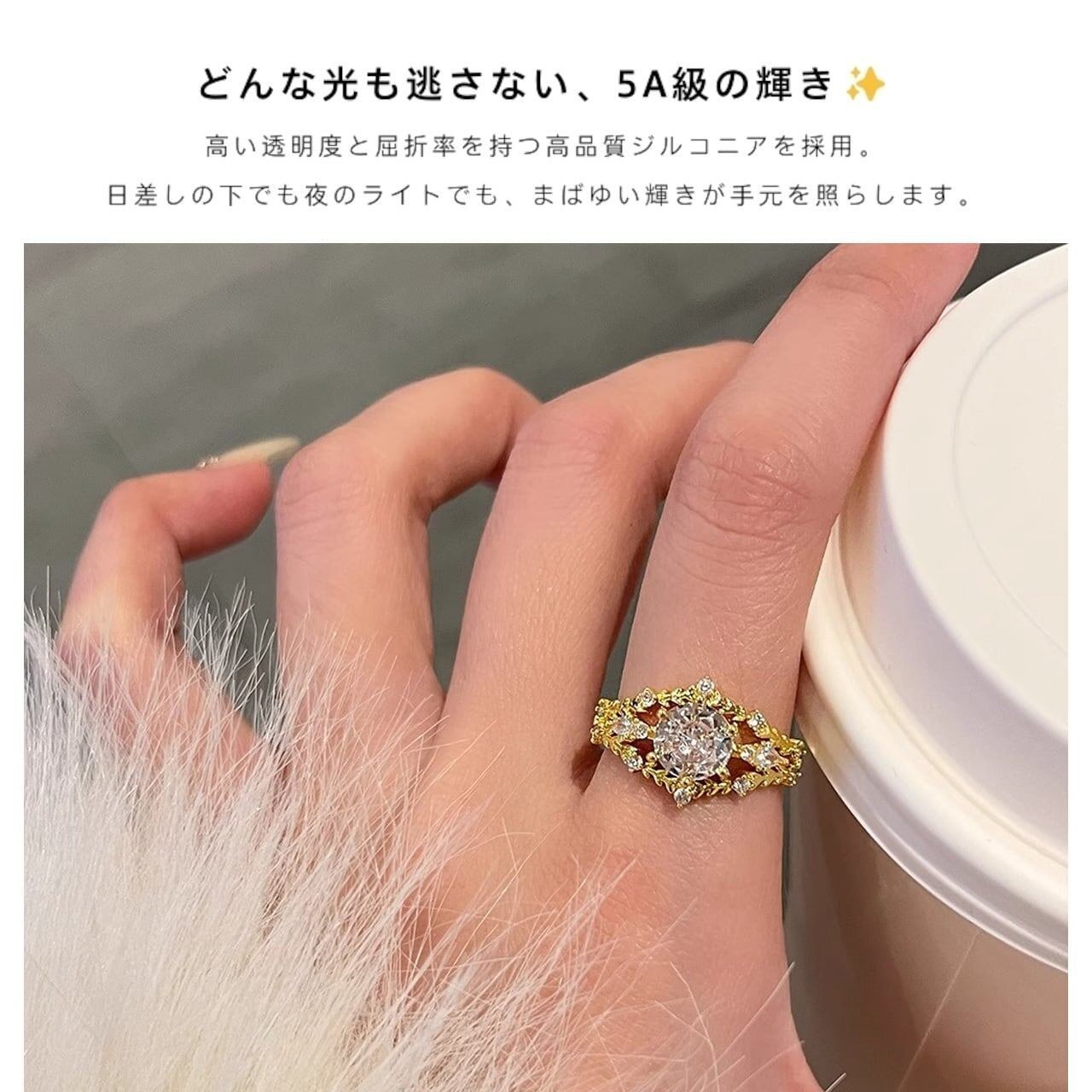 Y 227 . レトロ ジルコン リング オープンリング ヨーロピアン デザイン ギフト 贈り物 女性 彼女 婚約指輪 風変わり 個性的 5A級 輝き 重ね付け 防水 防汗 ゴールド シルバー ハンドメイド