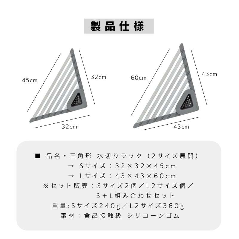 ■ 品名・三角形 水切りラック(2サイズ展開)