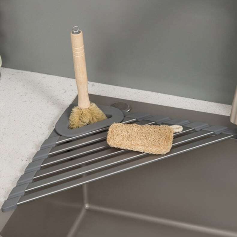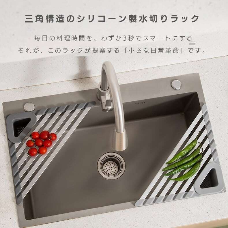 —— 三角構造のシリコーン製水切りラック。