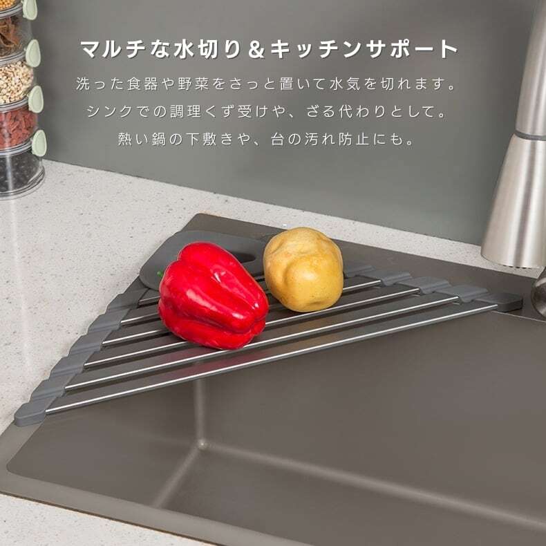 Y 286 . 【2サイズ】三角形 シリコーン製 水切りラック 水槽にかけるだけ 折りたたみ収納可能 鍋・皿・野菜・電気ケトル対応