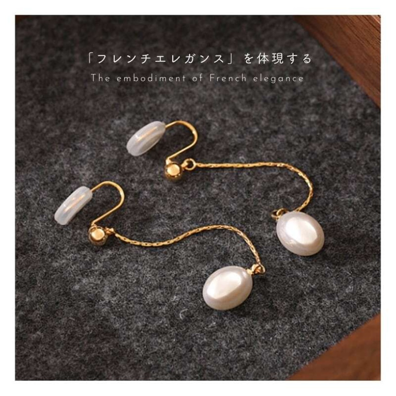 Y 238 . パール イヤーカフ ロング ピアス不要 ノンホール フレンチ エレガント 上品 ゴールド レディース 大人 真珠 揺れる デザイン プレゼント