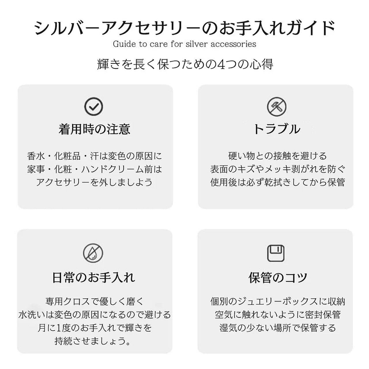 ⚠ メッキ製品ですので、汗や香水、整髪料が直接付着したままにすると、稀に変色や光沢が変化する場合があります。使用後は柔らかい布で軽く拭くことをお勧めします。