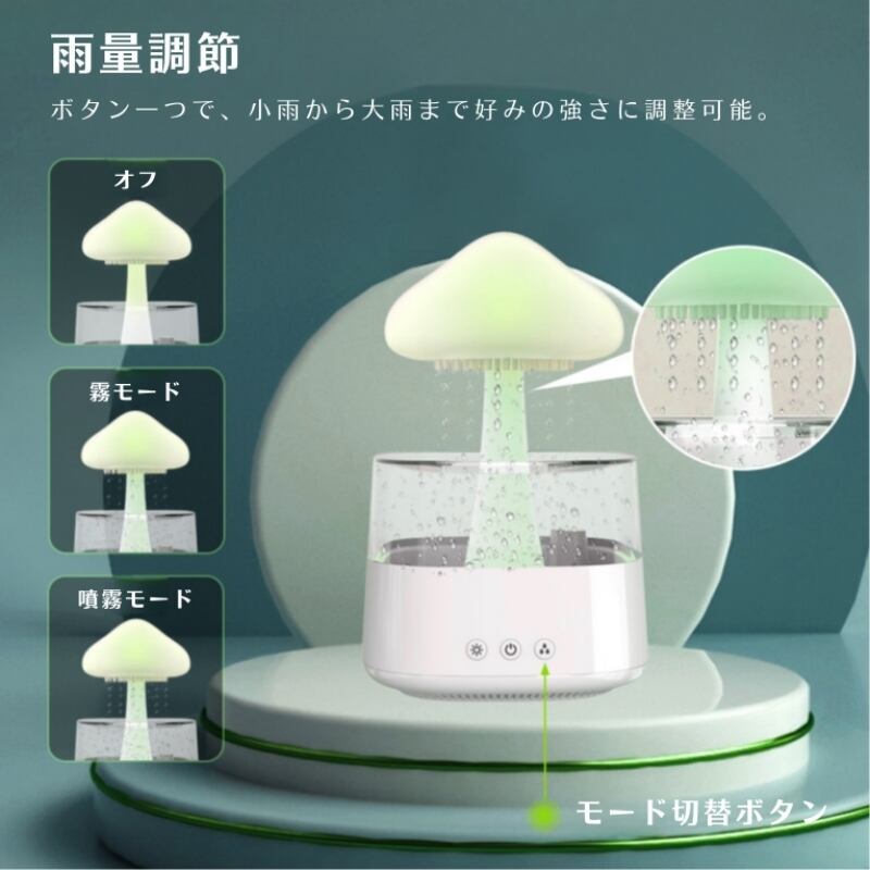 ■ 品名: マッシュルームクラウド 雨音加湿器 & アロマディフューザー