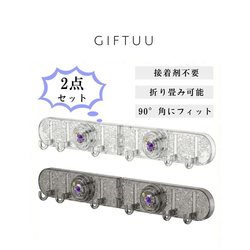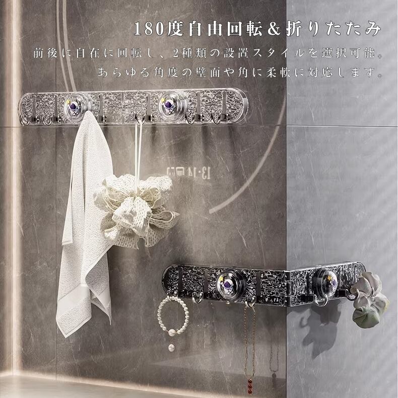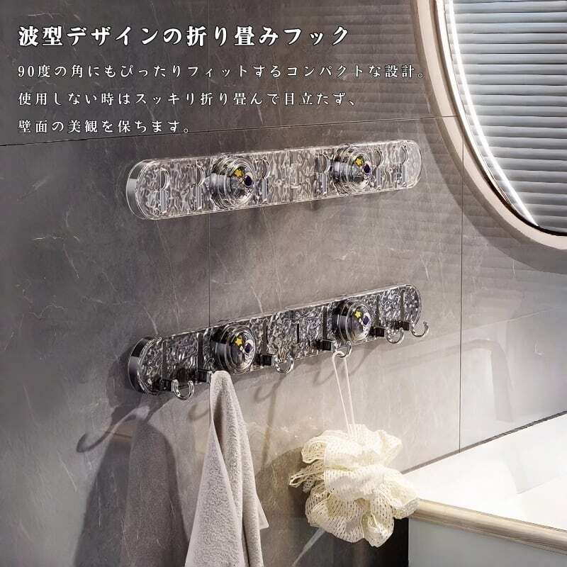 Y 224 . 真空吸盤 フック 2点セット 折り畳み 多機能 水波デザイン 接着剤不要 強力吸着 耐荷重 防水 浴室 キッチン 収納 インテリア 壁掛け 滑らかな壁面用 繰り返し使える