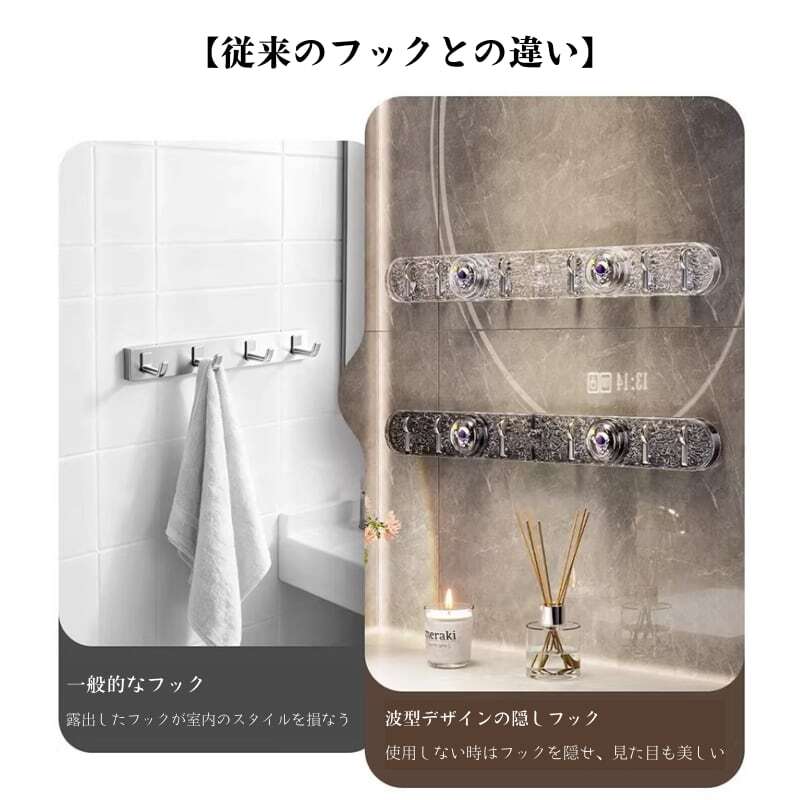 必要な時だけ現れる魔法のフックで、機能性と空間の美しさを両立させます。