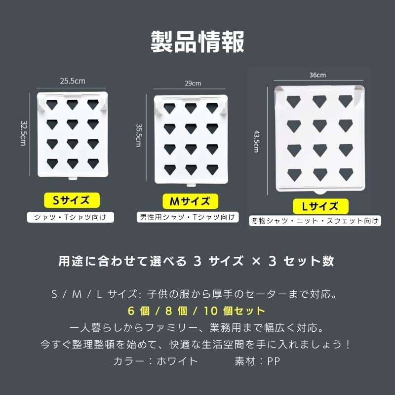 Y 320 .畳み補助プレート たたみ板 3サイズ展開 衣類収納 時短 省スペース クローゼット収納 仕切り板 整理整頓 積み重ね可能 底部小窓付き Sサイズ10個 Mサイズ8個 Lサイズ6個 PP製