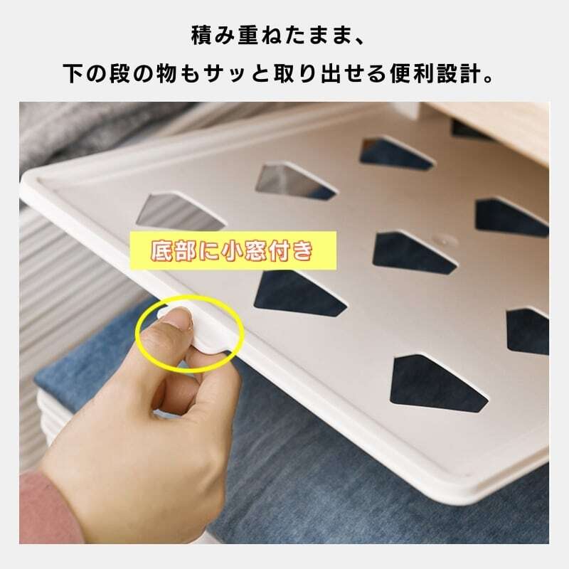 底部小窓付き(積み重ねたまま下の服も取り出せる)