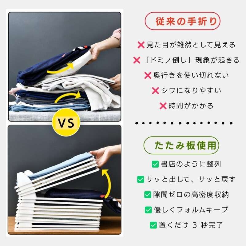 衣類収納 畳み補助プレート