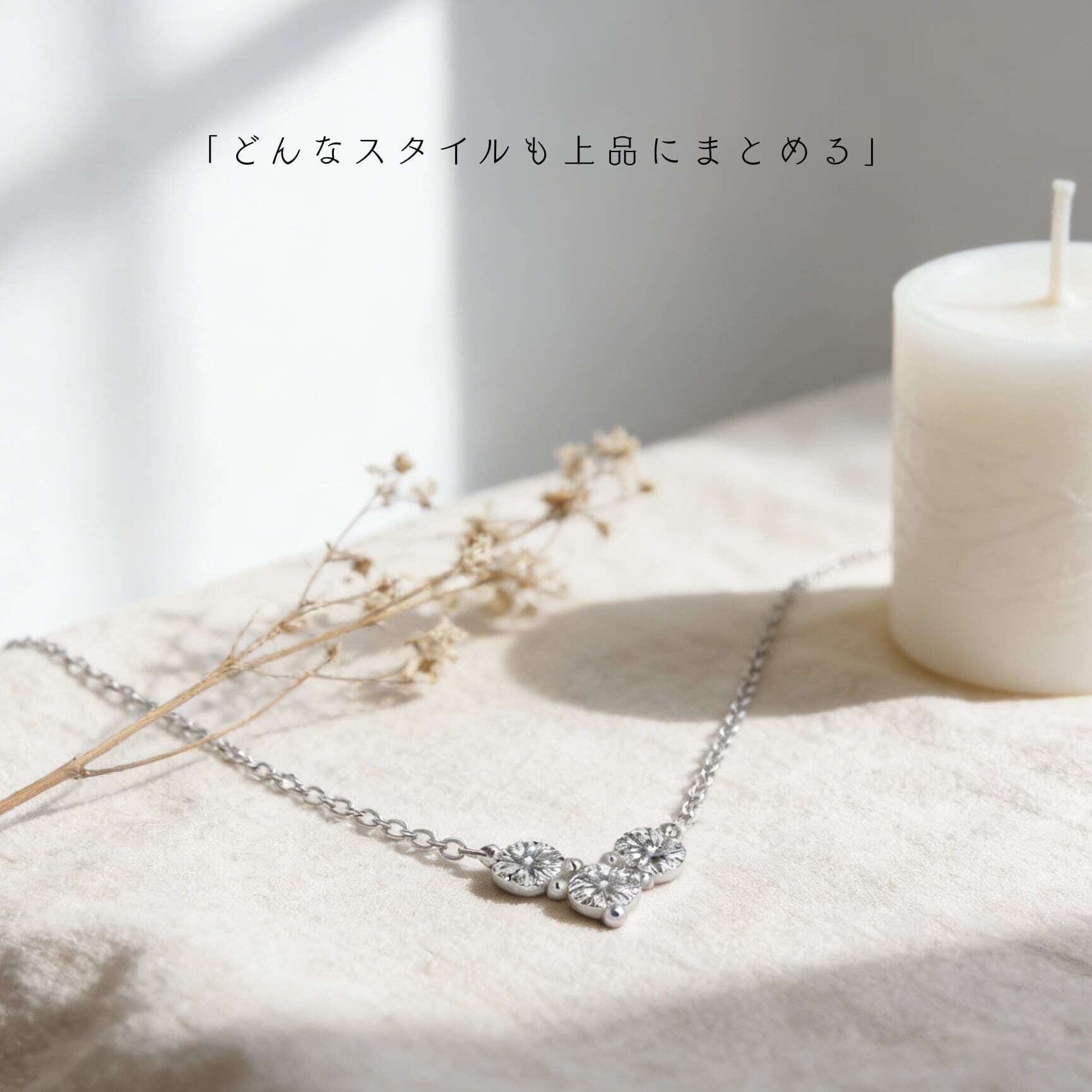 ネックレス全体でわずか約2g。身に着けていることを忘れてしまうほど軽やかで、一日中つけていても全く負担になりません。