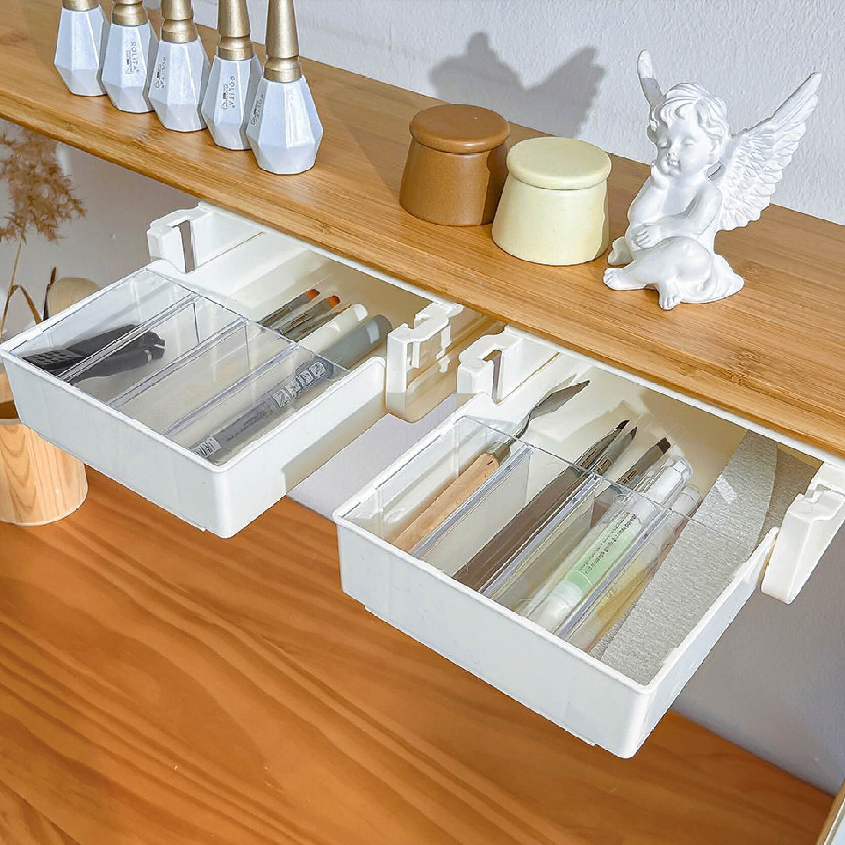 Y 393 . 吊り下げ式引き出しボックス 2個セット 仕切り付き 工具不要 壁掛け/置き台兼用 収納ケース