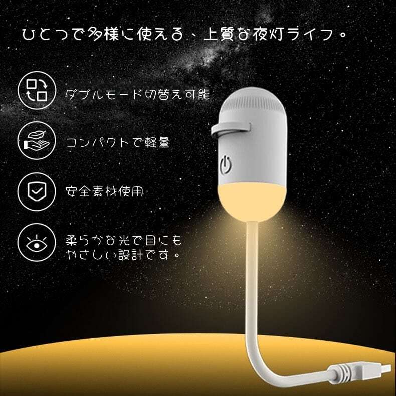 USB給電で置き場所を選ばず、コンパクトなデザインがあなたの「心地よい夜」をそっと支えます。