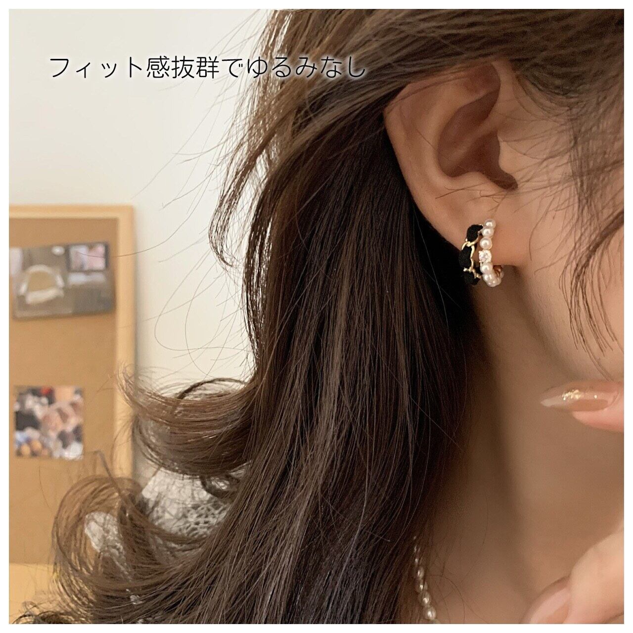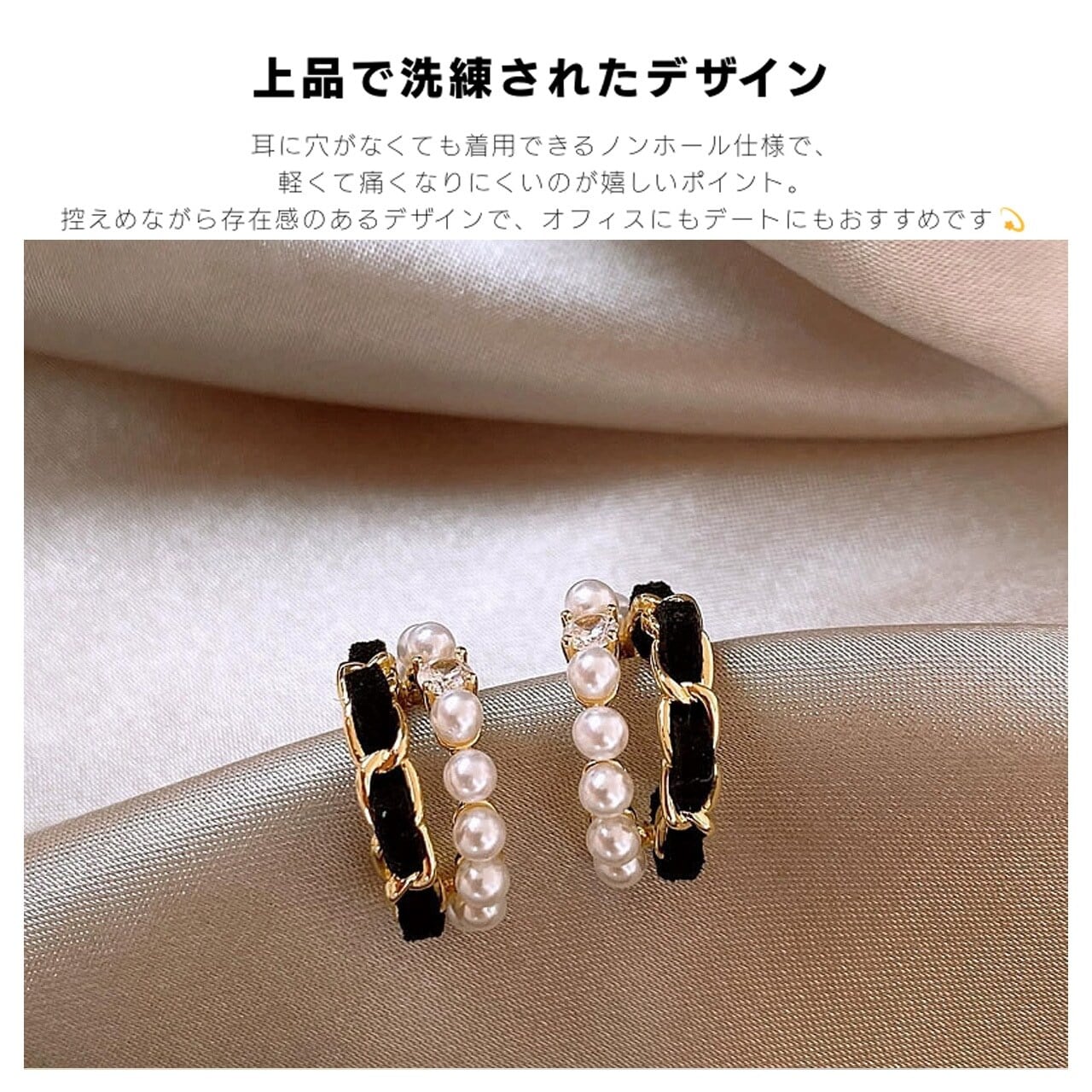 クリップ式の設計で、ピアス穴がない方でも安心して着用できます。イヤーリングの内側は滑りにくい素材で仕上げられており、長時間の着用でも痛みを感じにくく、日常の活動に支障をきたしません。