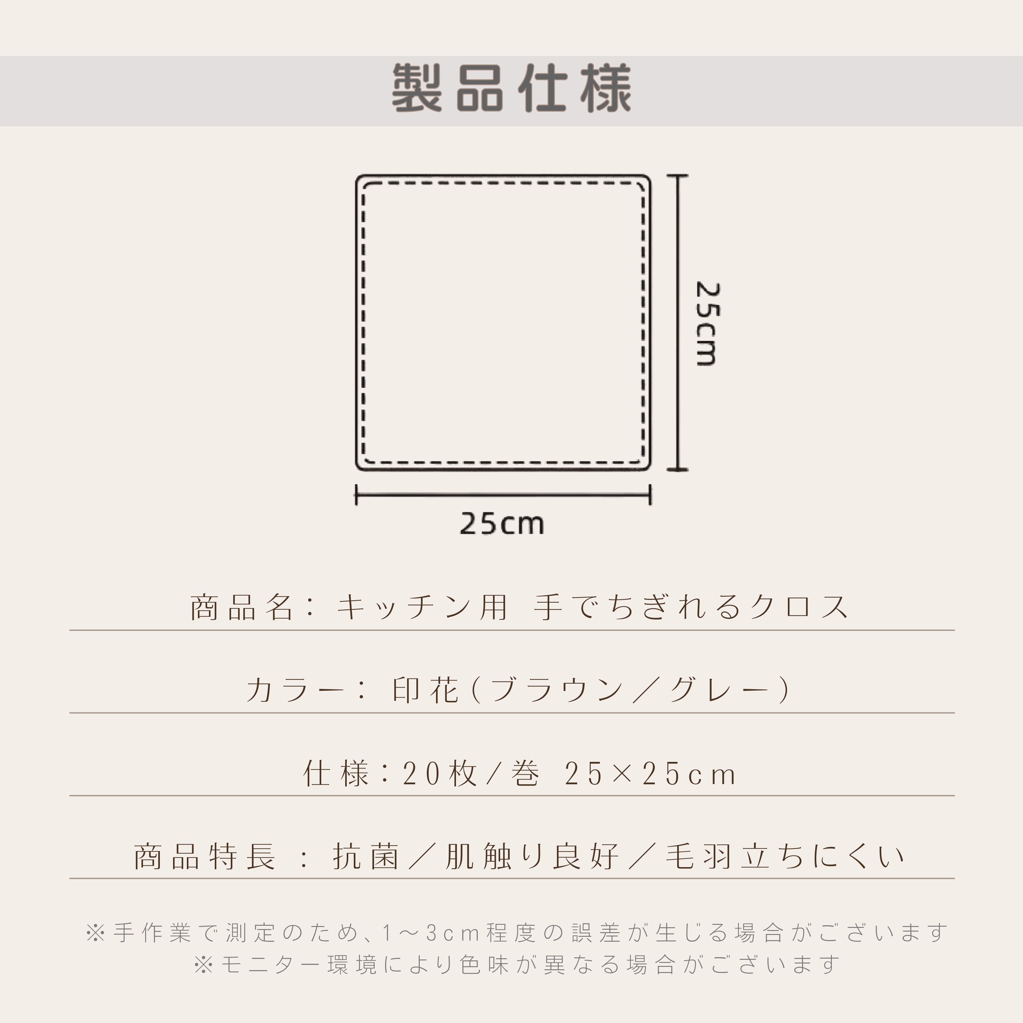 ■ サイズ:約25 cm × 25 cm(1枚)