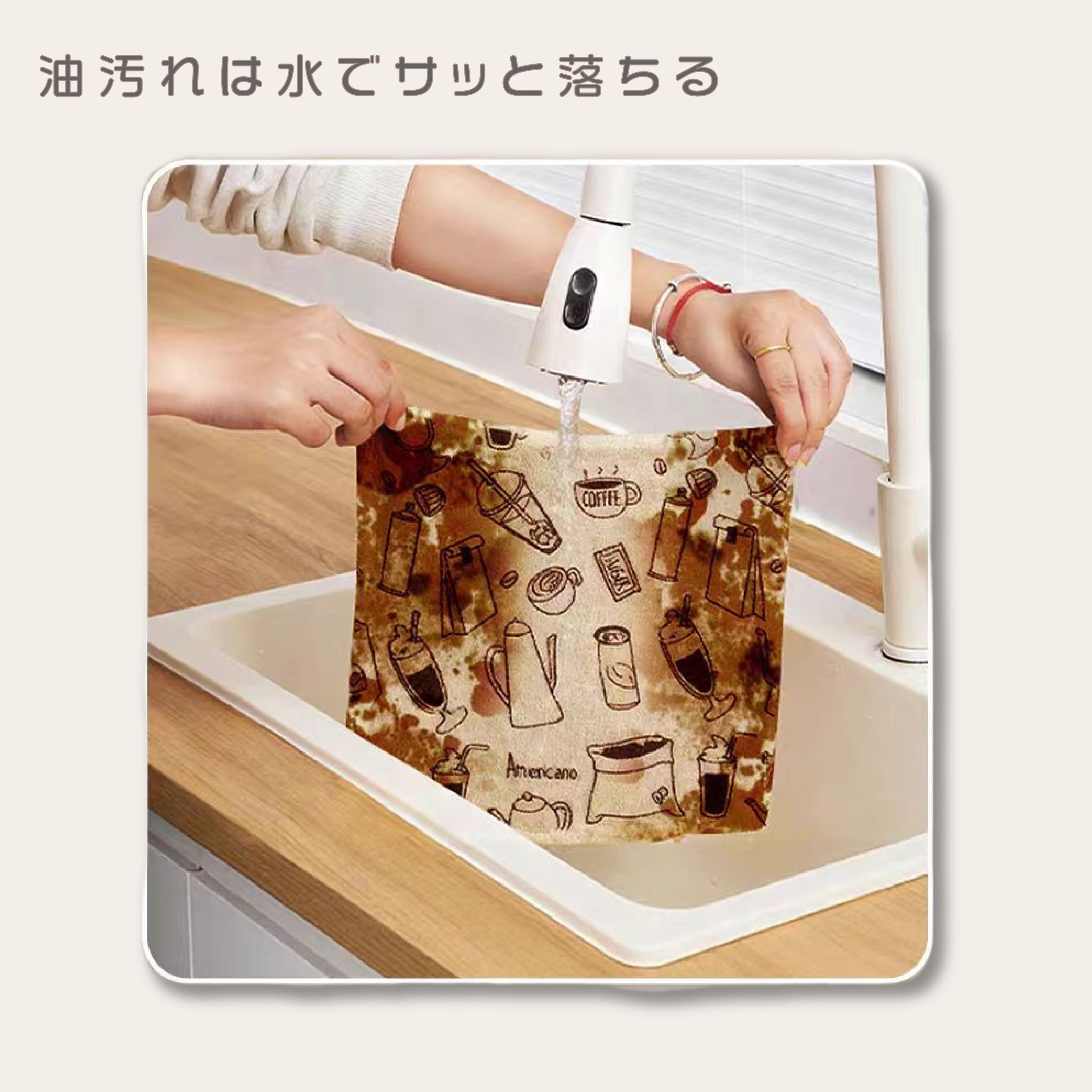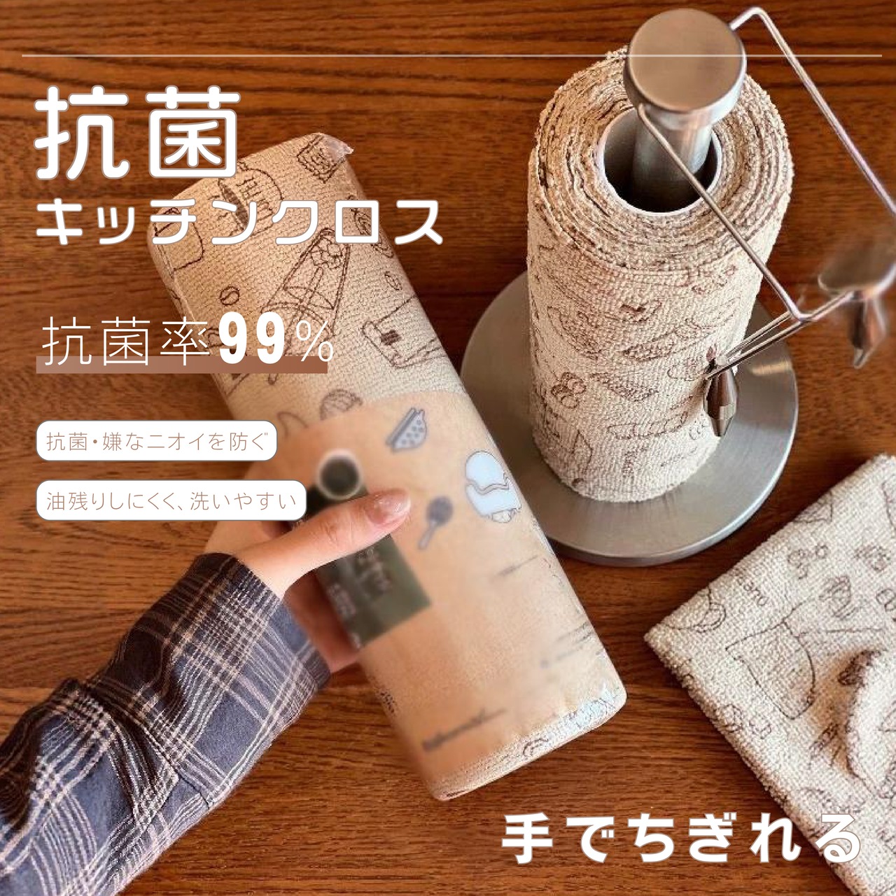 繰り返し使える、エコなキッチンクロスです。手でちぎれて、水洗いOK。吸油力抜群で抗菌99%