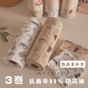 Y 398 . 【繰り返し使える】キッチンクロス 3巻セット 手でちぎれる 水洗いOK 抗菌99% 混色おまかせ