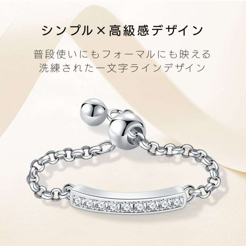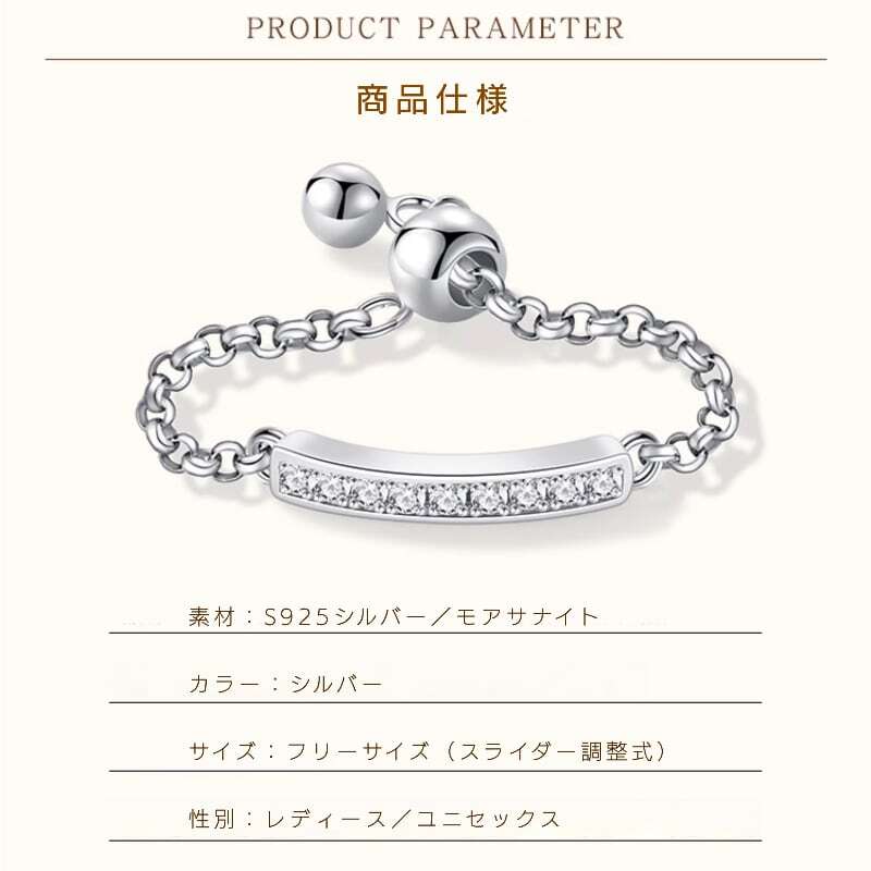 Y 129 . 2 微笑みリング モアサナイト 9粒 一文字チェーンリング レディース ジュエリー シルバーアクセ 925シルバー製 アレルギー対策済み