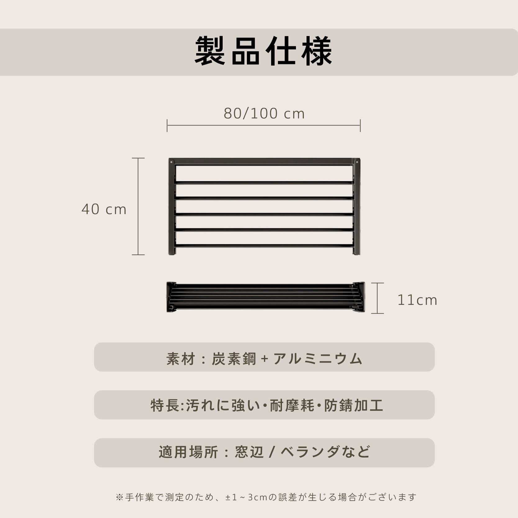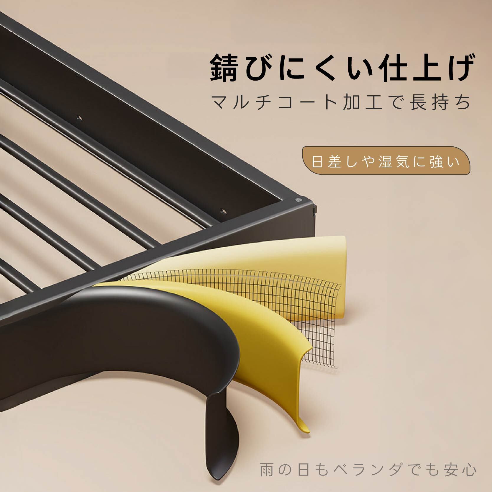 表面に防錆加工を施しています。雨の日のベランダや、湿気の多い場所でも錆びにくく、長くご使用いただけます。