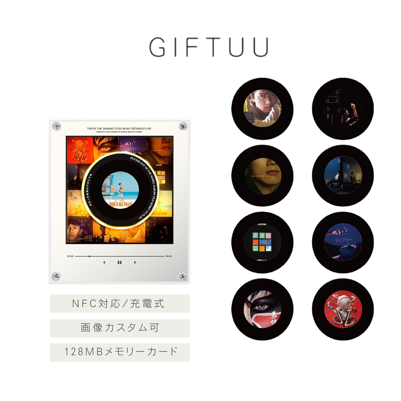 Y 399 . 【 画像カスタム】NFCアルバムプレーヤー 冷蔵庫マグネット 充電式 ギフト 音楽再生 2タイプ 回転/非回転 128MB 内蔵メモリ (音楽データはお客様ご自身で転送ください)