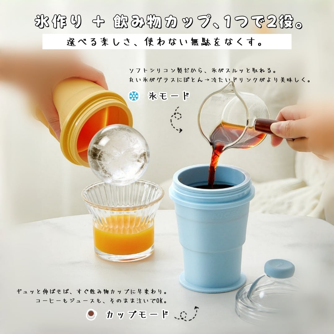 ✅ 氷作り&ドリンクカップ、1つで2役